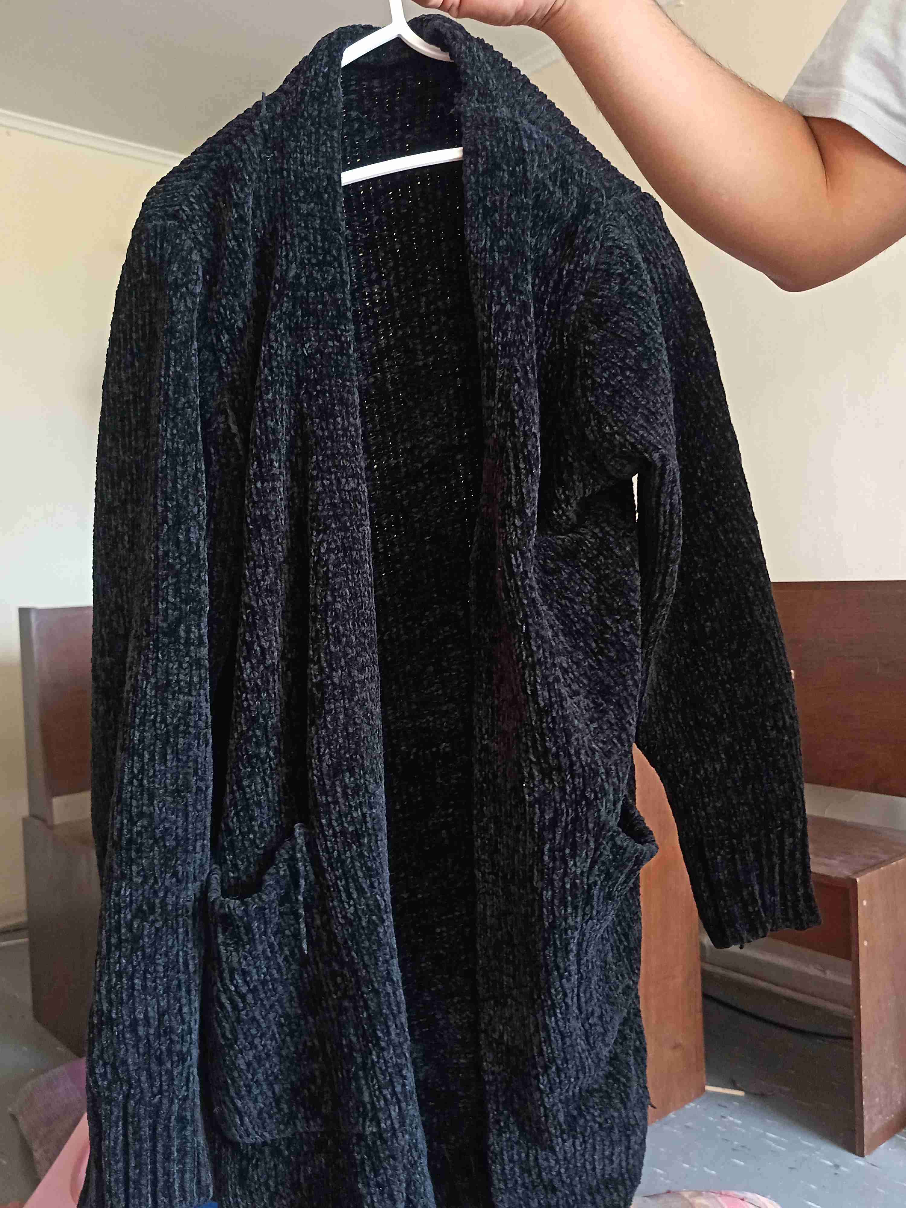 Cárdigan de punto abierto, ideal para el invierno. En buen estado, suave y cómodo.