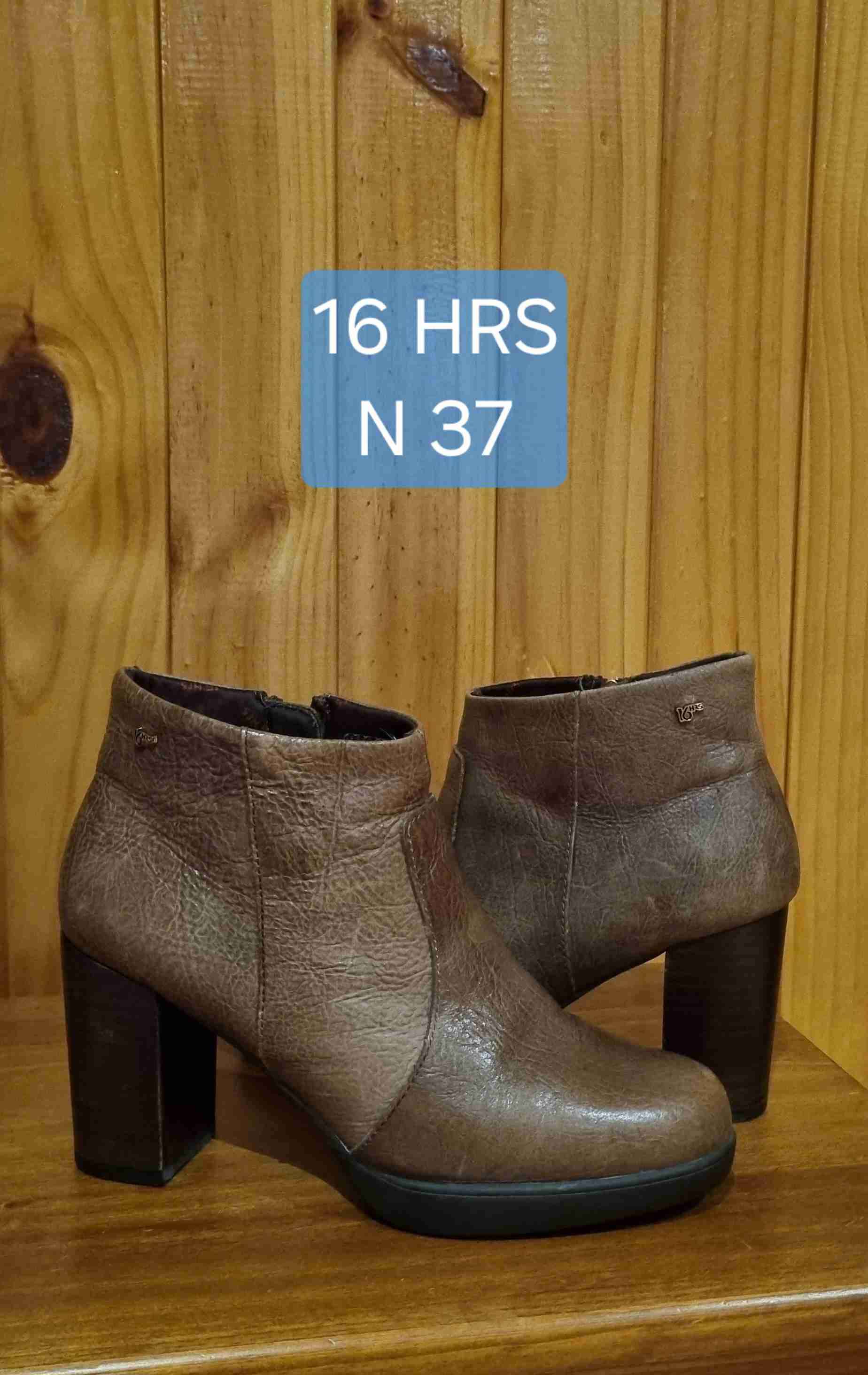 Botines de cuero en color marrón, estilo casual con tacón alto. Buen estado general, tamaño 37 Y 38
