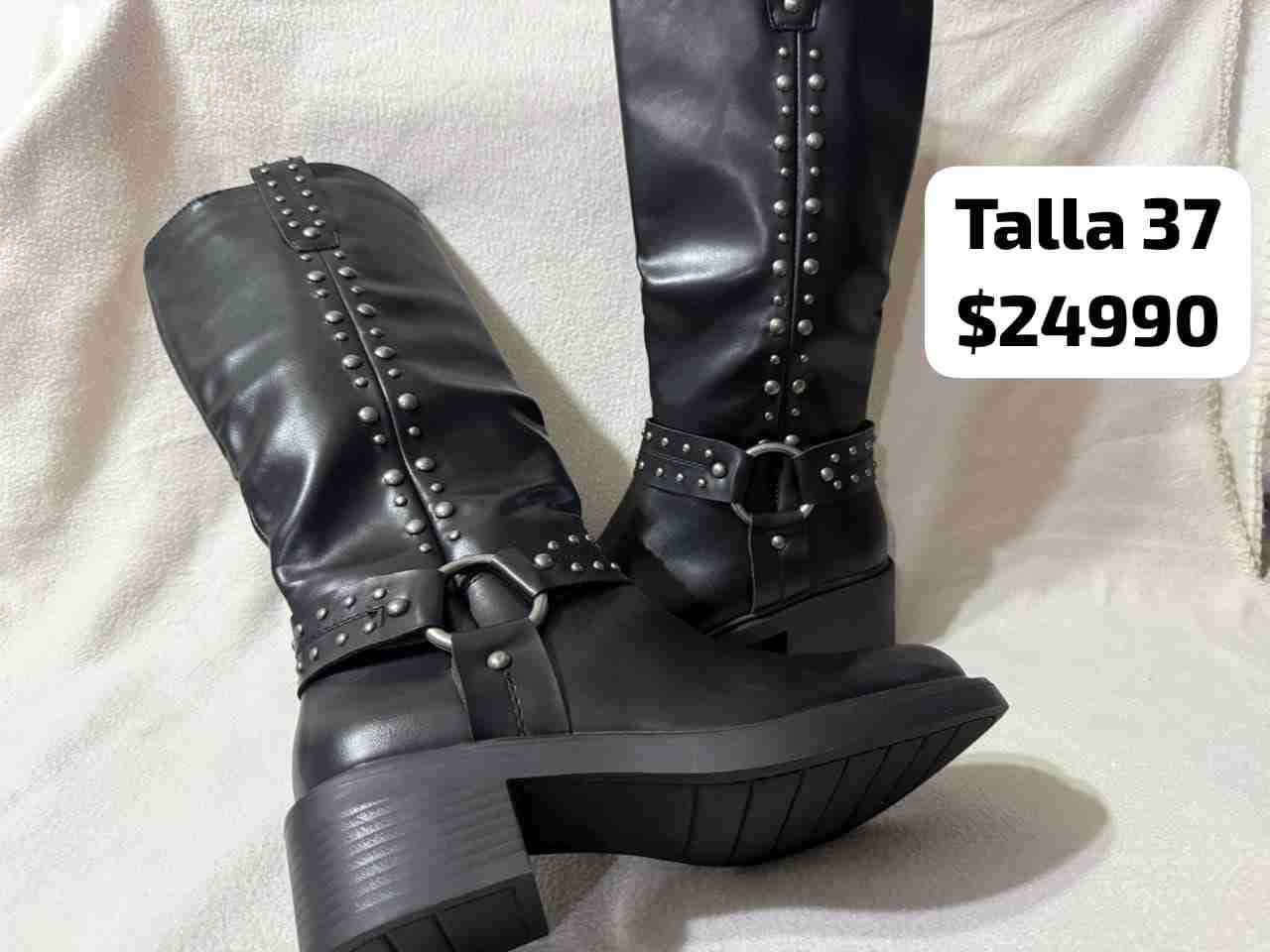 Elegantes botas negras de caña alta con tachas decorativas. Perfectas para un look audaz y moderno. Talla 37.