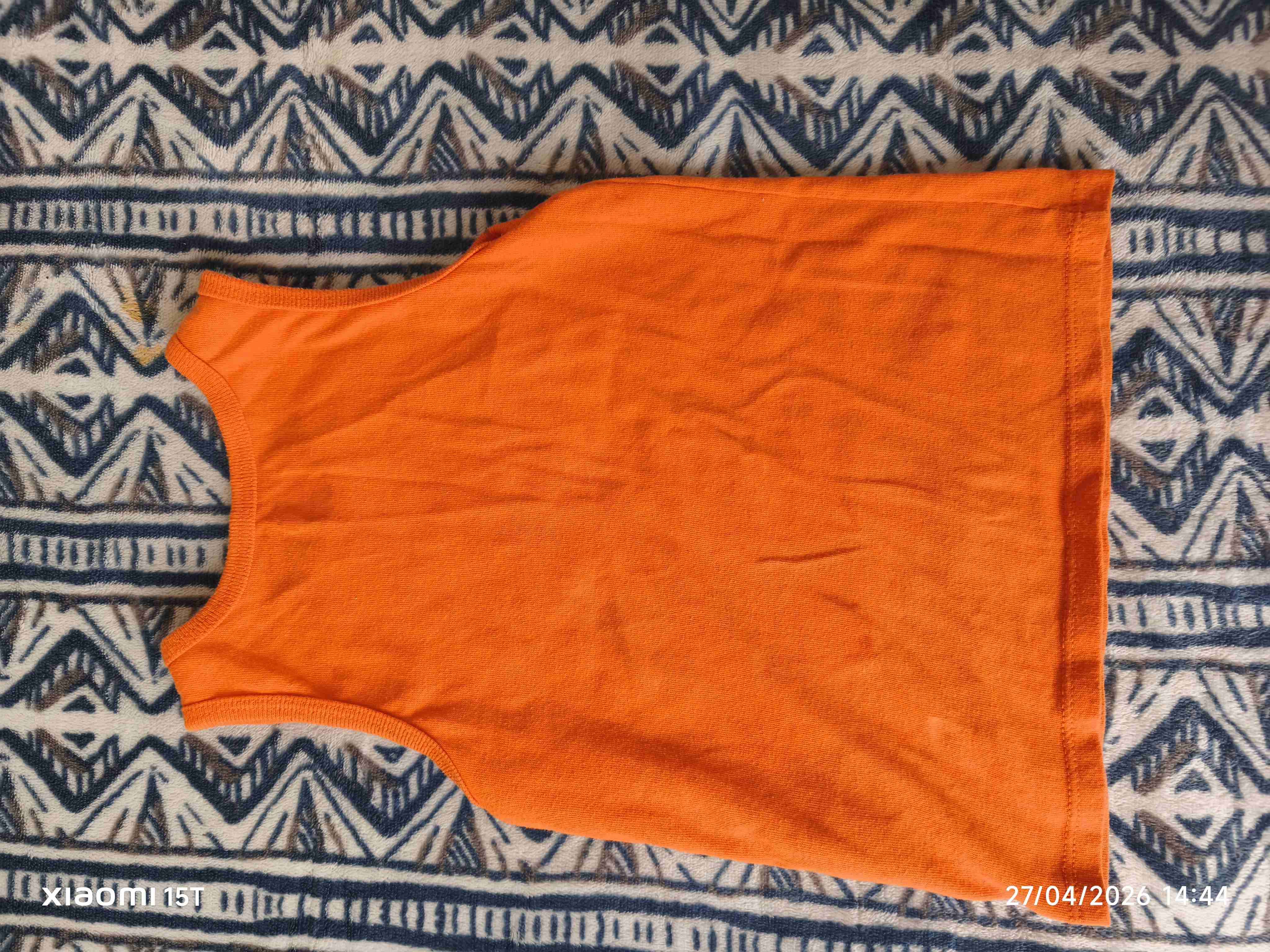 Polera sin mangas de color naranja vibrante, perfecta para el verano. En buen estado general.talla 3t