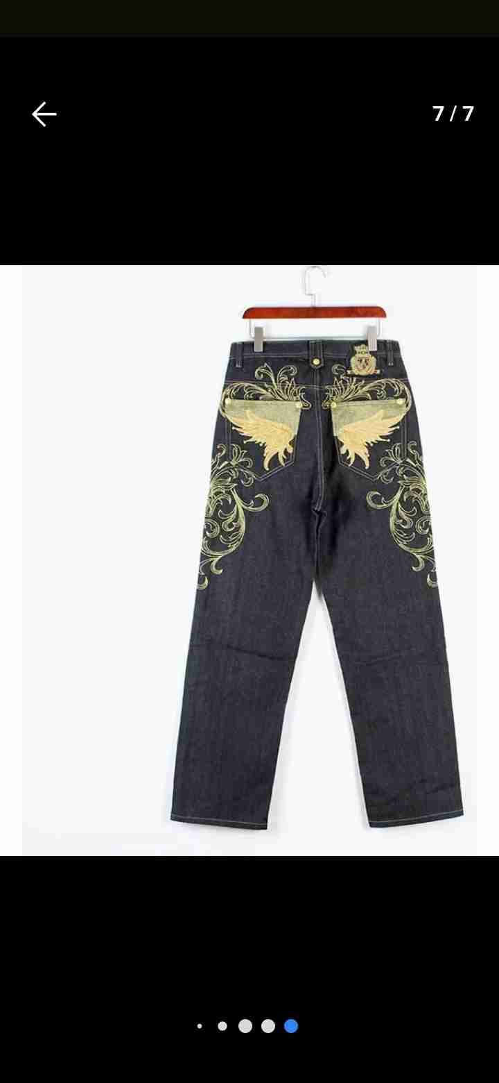 Jeans oscuros con bordado llamativo en la parte trasera. Perfecto para un look casual. En buen estado.