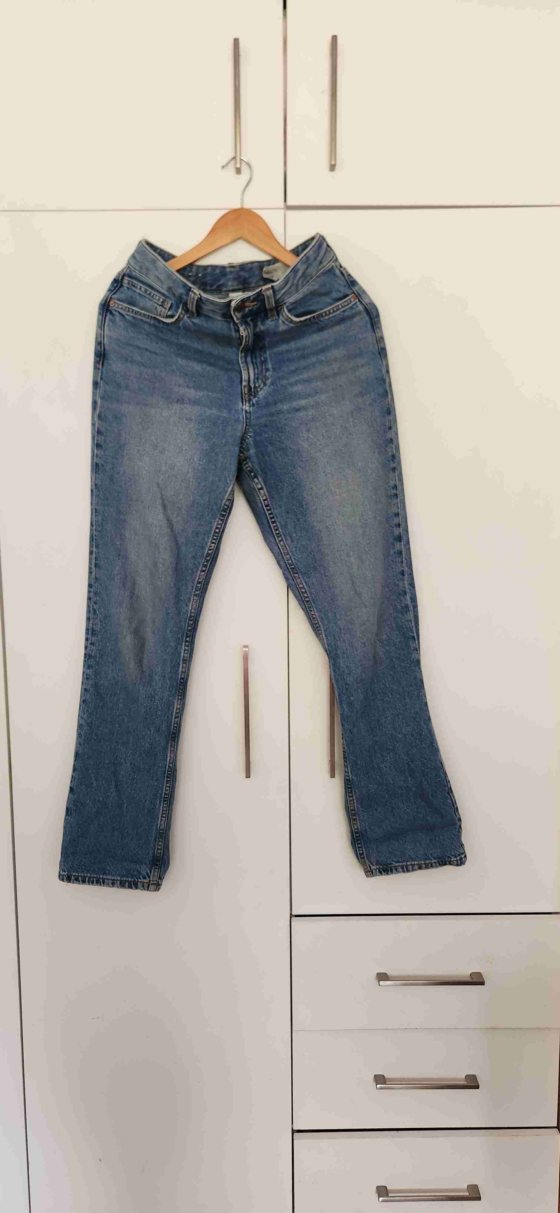 Jeans clásicos de mezclilla azul, en buen estado. Perfectos para un look casual diario. Talla 40, tiro alto