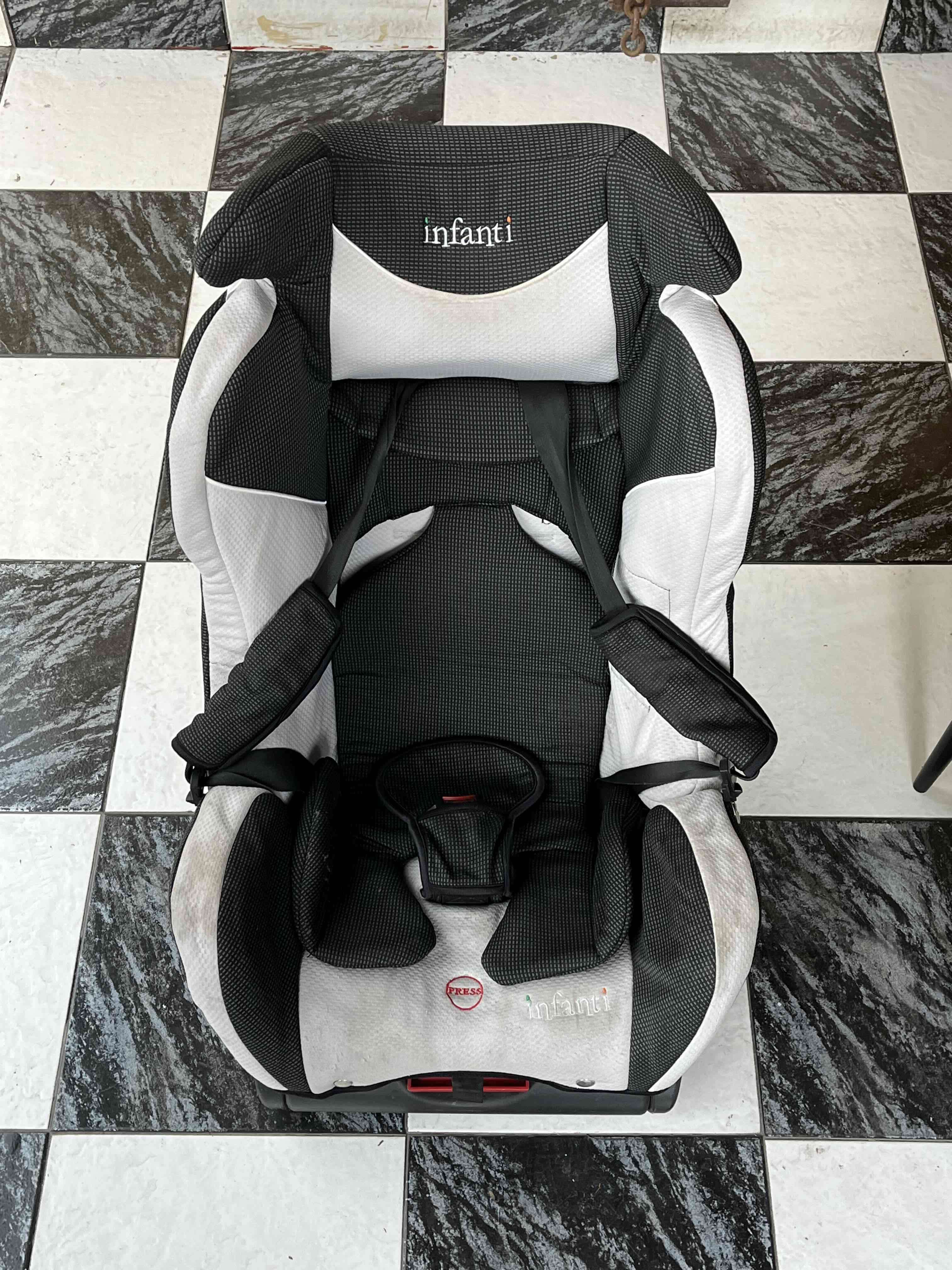Silla de auto Infanti en buen estado, color negro y gris ideal para la seguridad de tu bebé. Presenta signos leves de uso.