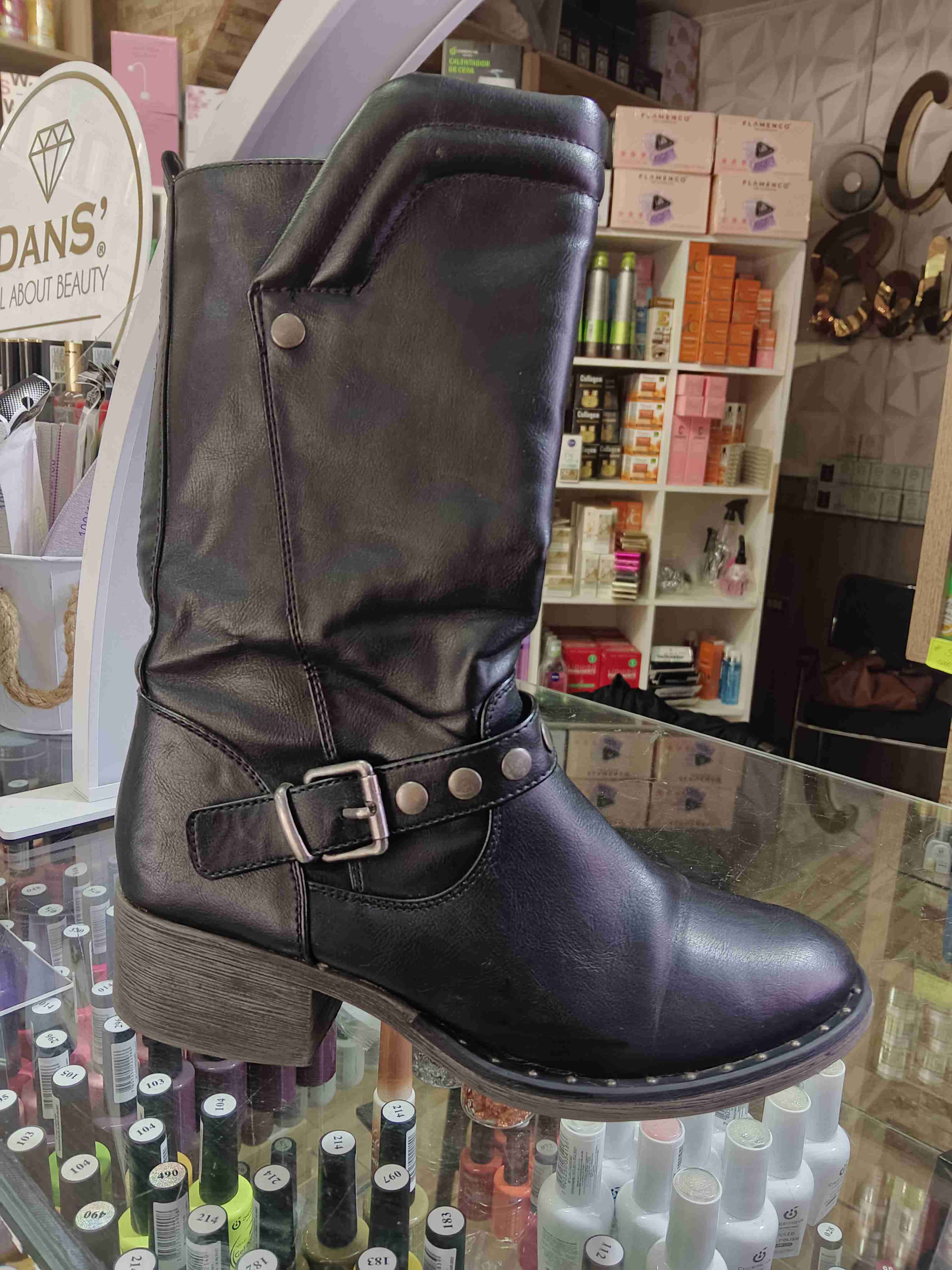 Bota de cuero negro con hebilla
