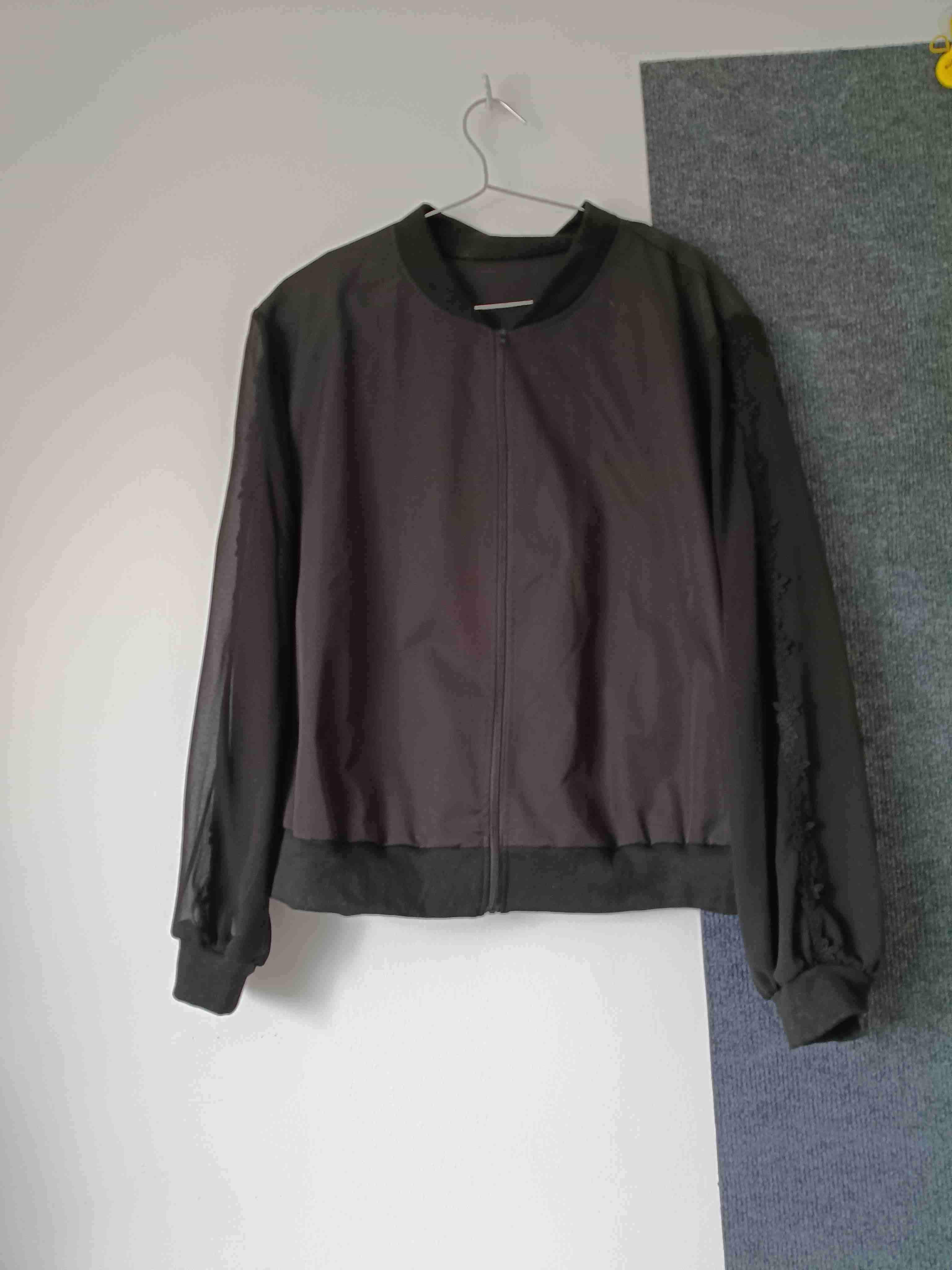 Chaqueta negra de estilo casual, ideal para usar en otoño. Buen estado. Mangas floreadas.