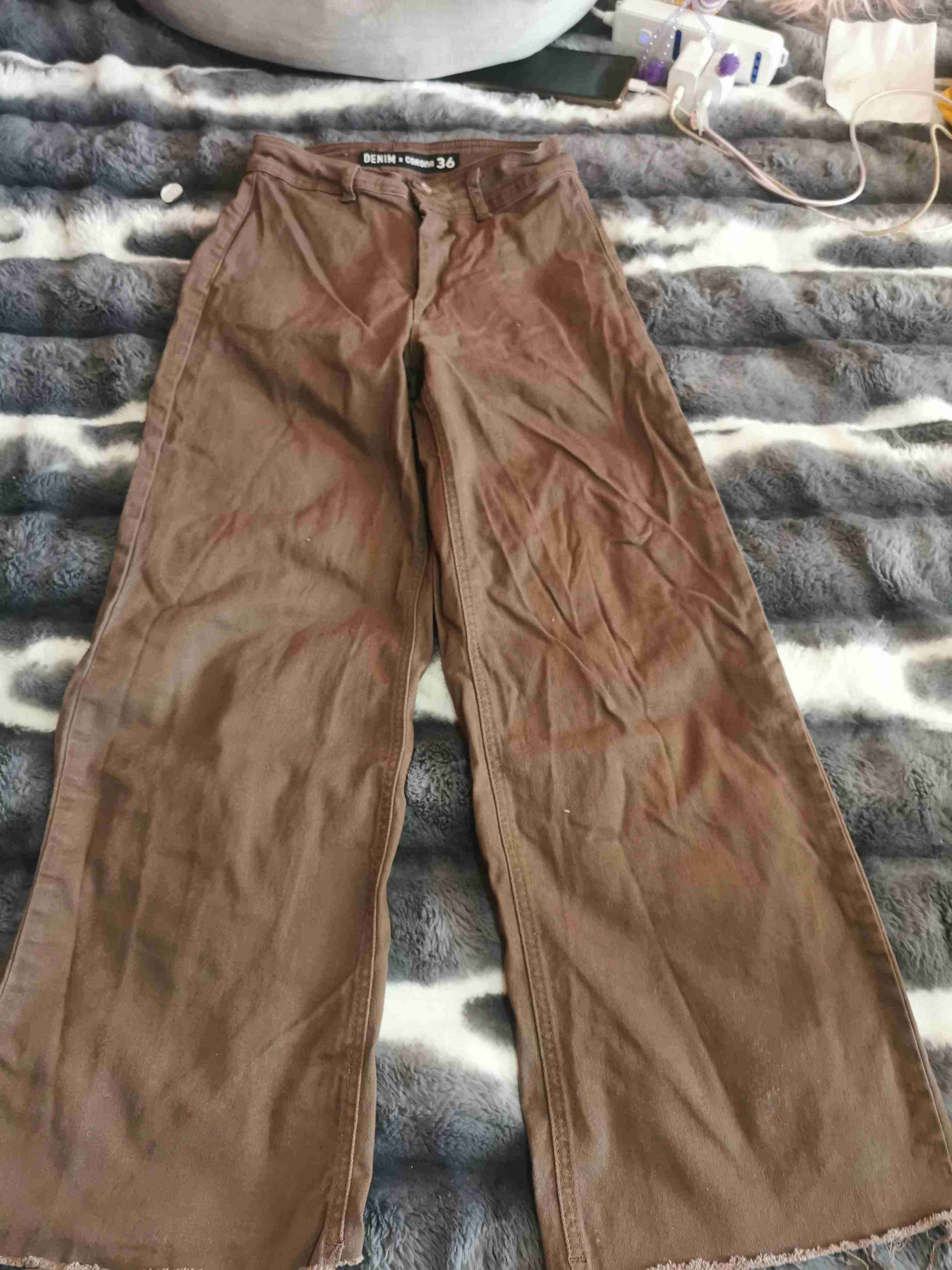 Pantalones marrones de mezclilla, talla 36, en buen estado. Ideales para uso diario con estilo casual.