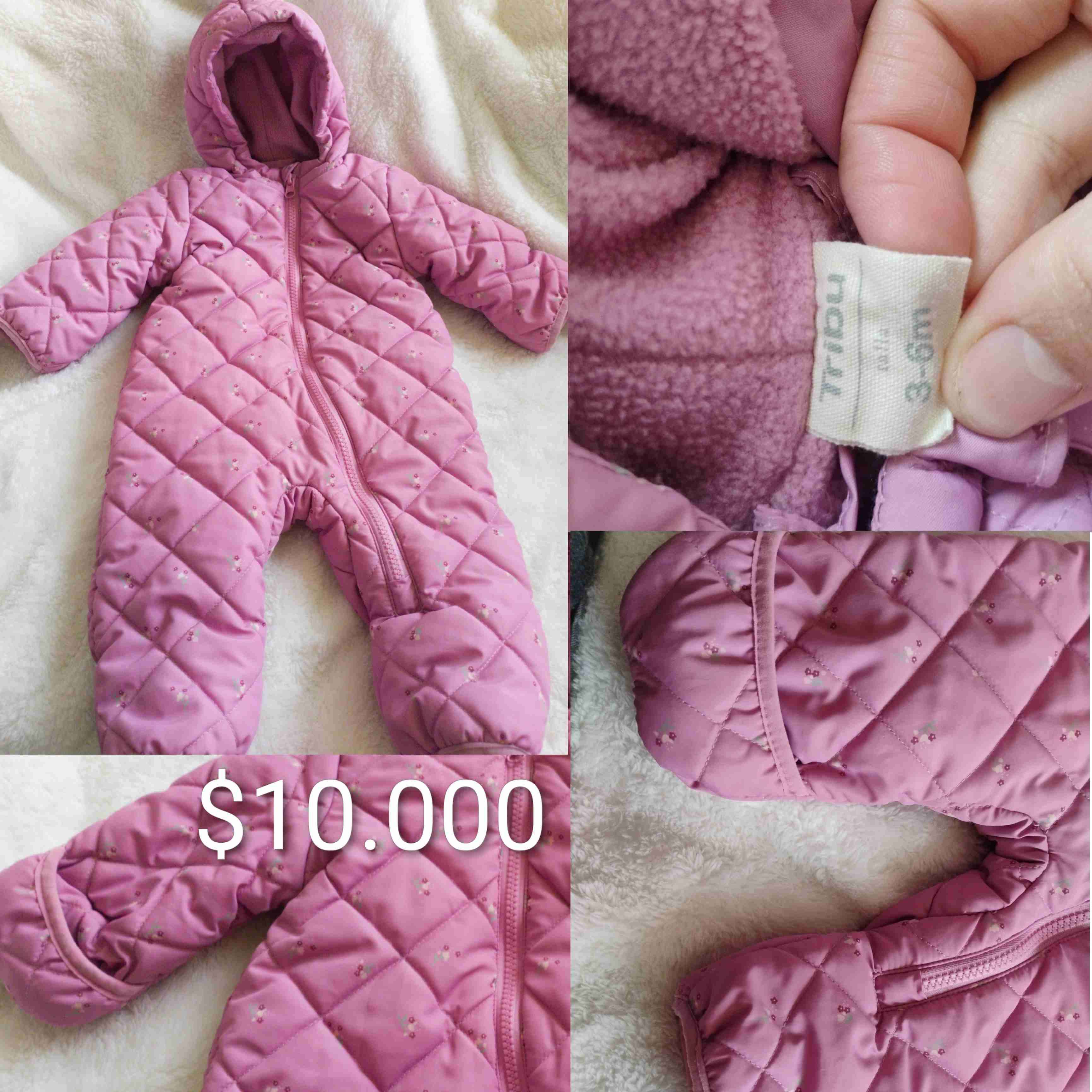 Enterito acolchado en color rosado, ideal para mantener a tu bebé abrigado. En buen estado.