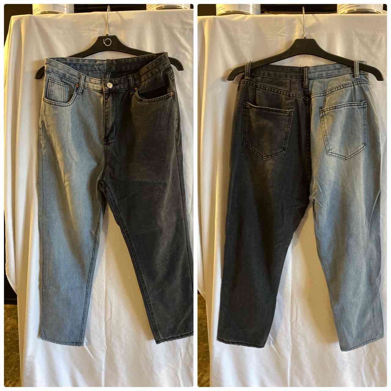Jeans de mezclilla en dos tonos, estilo único para un look casual. En buenas condiciones con leves signos de uso.