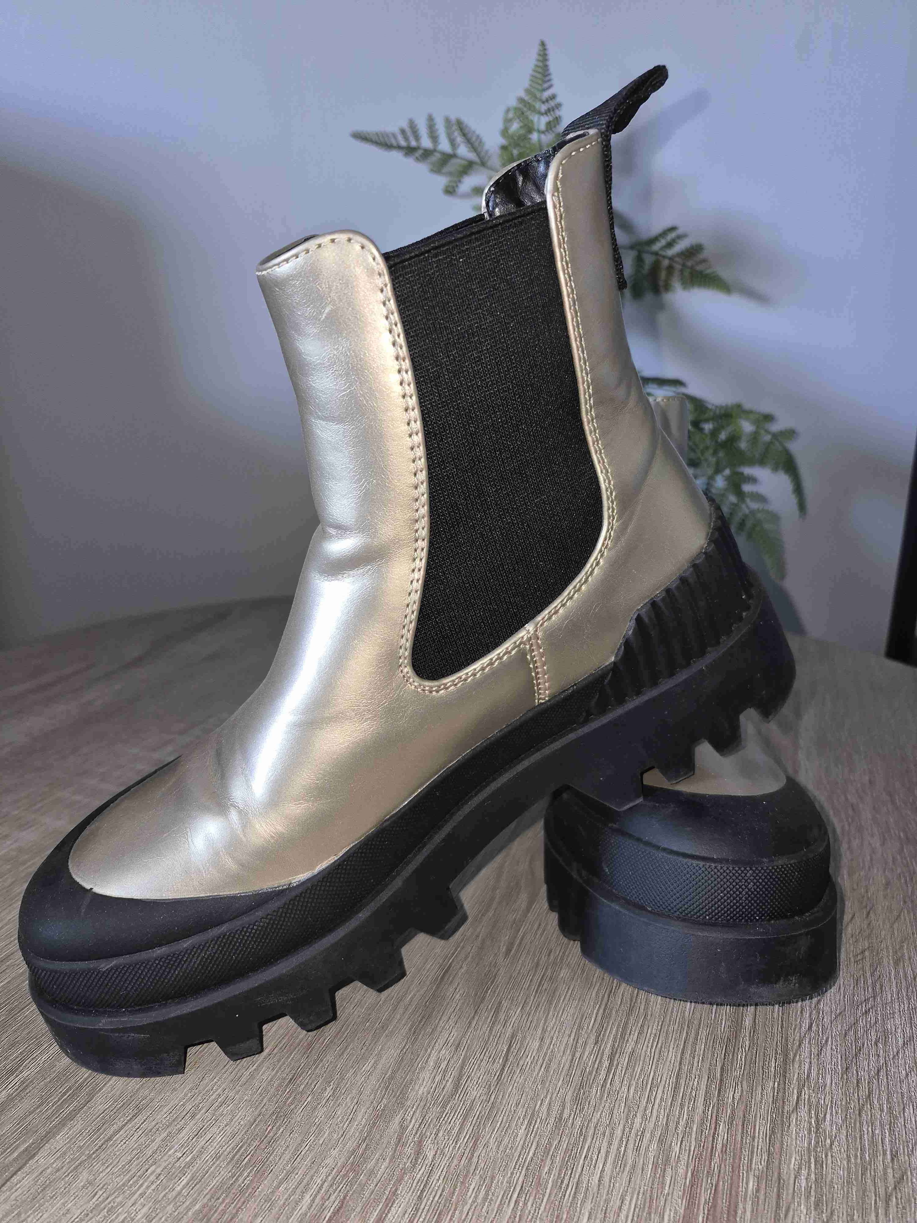 Elegantes botines dorados estilo Chelsea con plataforma alta. Perfectos para un look moderno y cómodo.