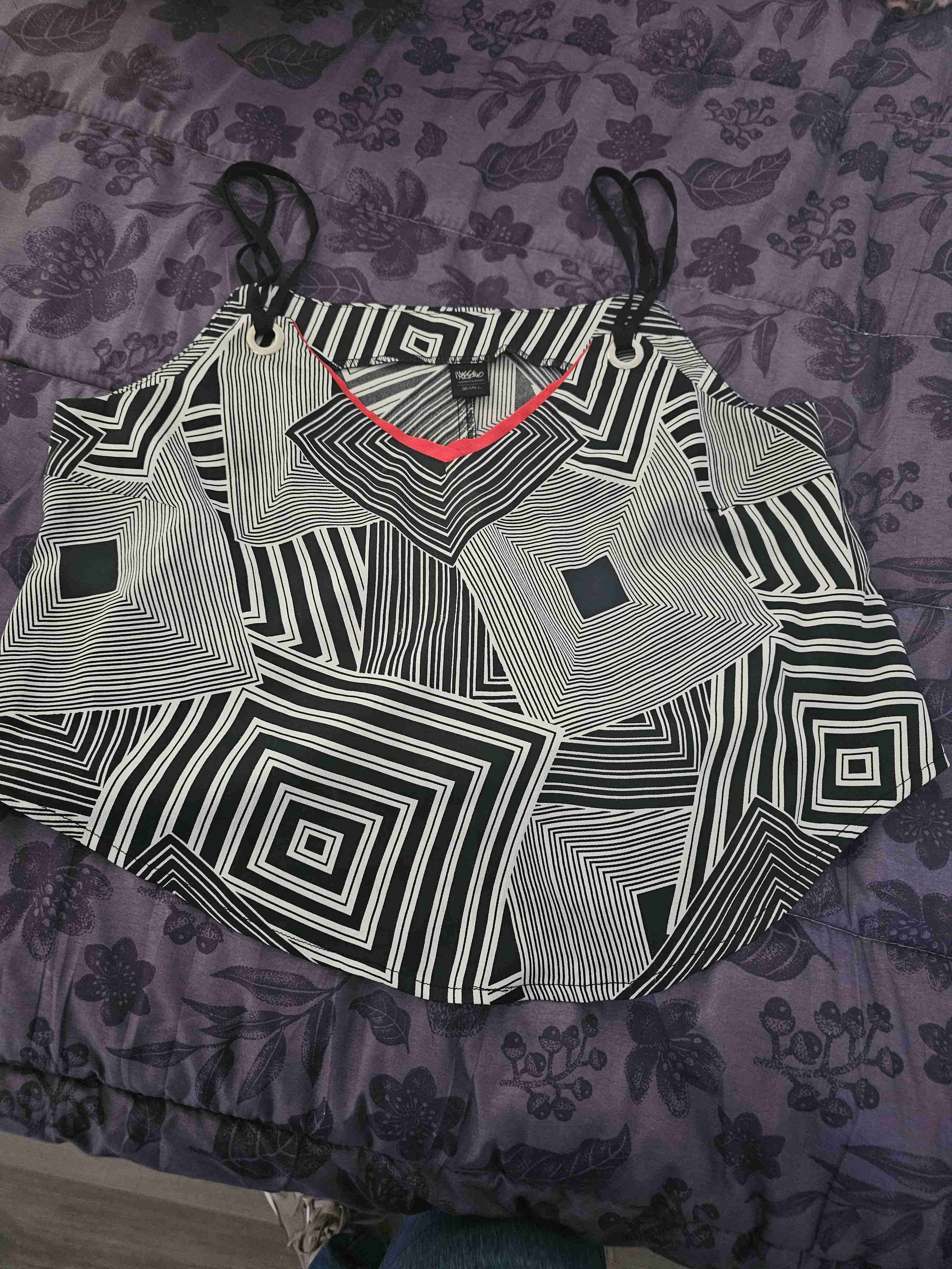 Polera con tirantes delgados y un diseño geométrico blanco y negro. Ideal para días casuales y de verano. Talla s