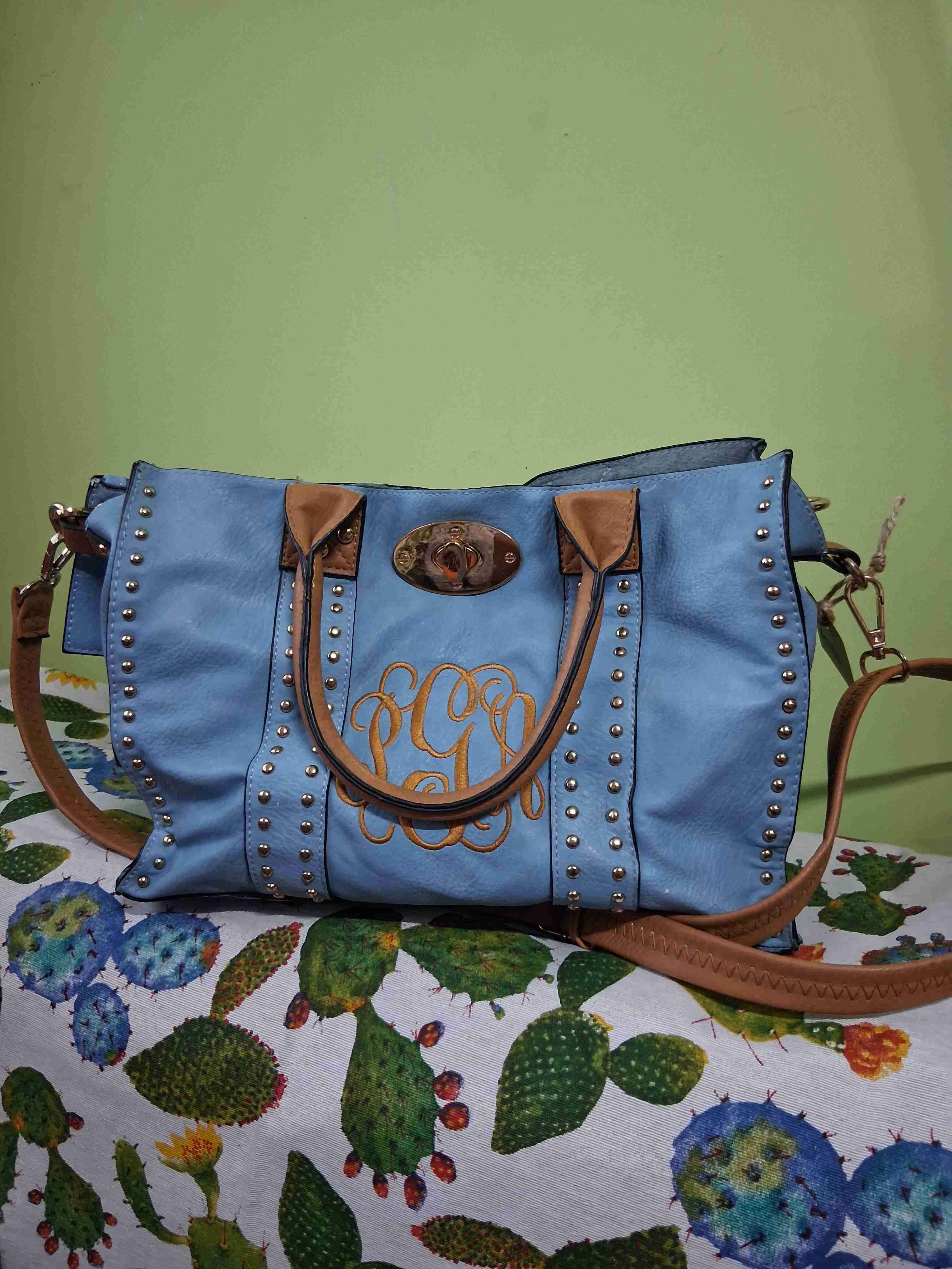 Cartera azul con tachas