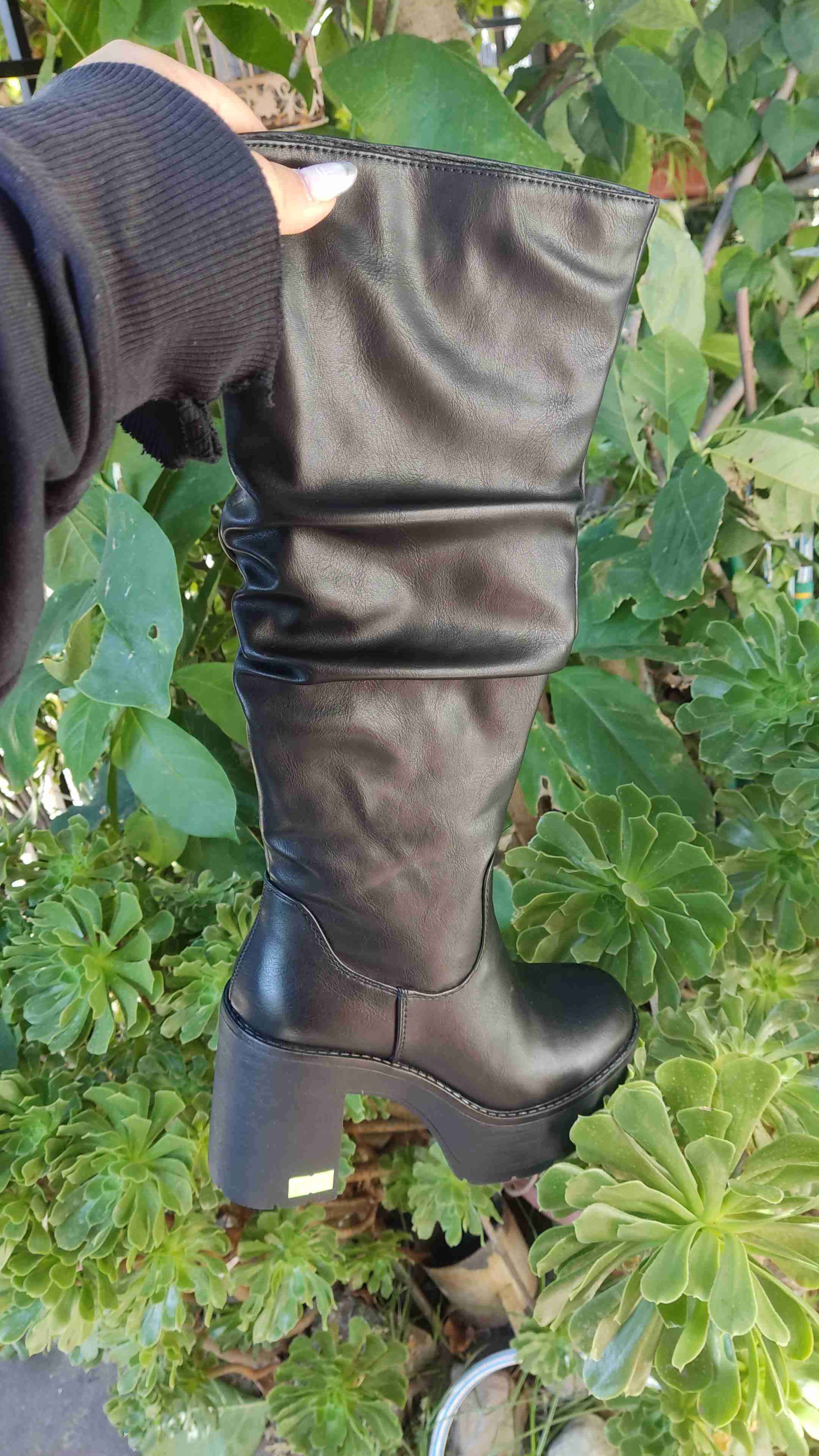 Bota alta de cuero negra, ideal para invierno o looks casuales. En buen estado, tiene un diseño elegante y cómodo. #35 grande (36)