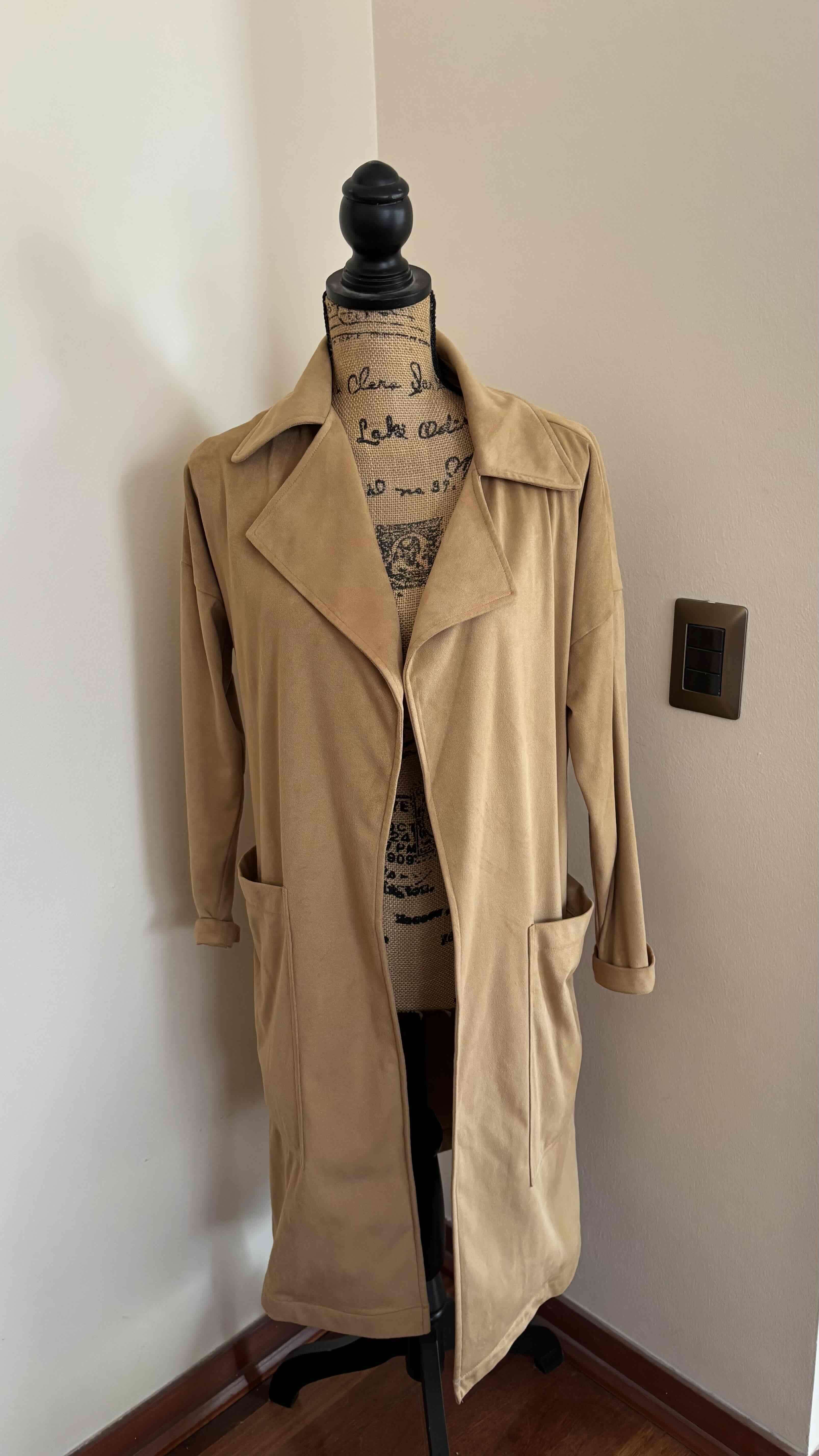 Elegante abrigo beige para mujer, ideal para el invierno. En buen estado con bolsillos amplios.