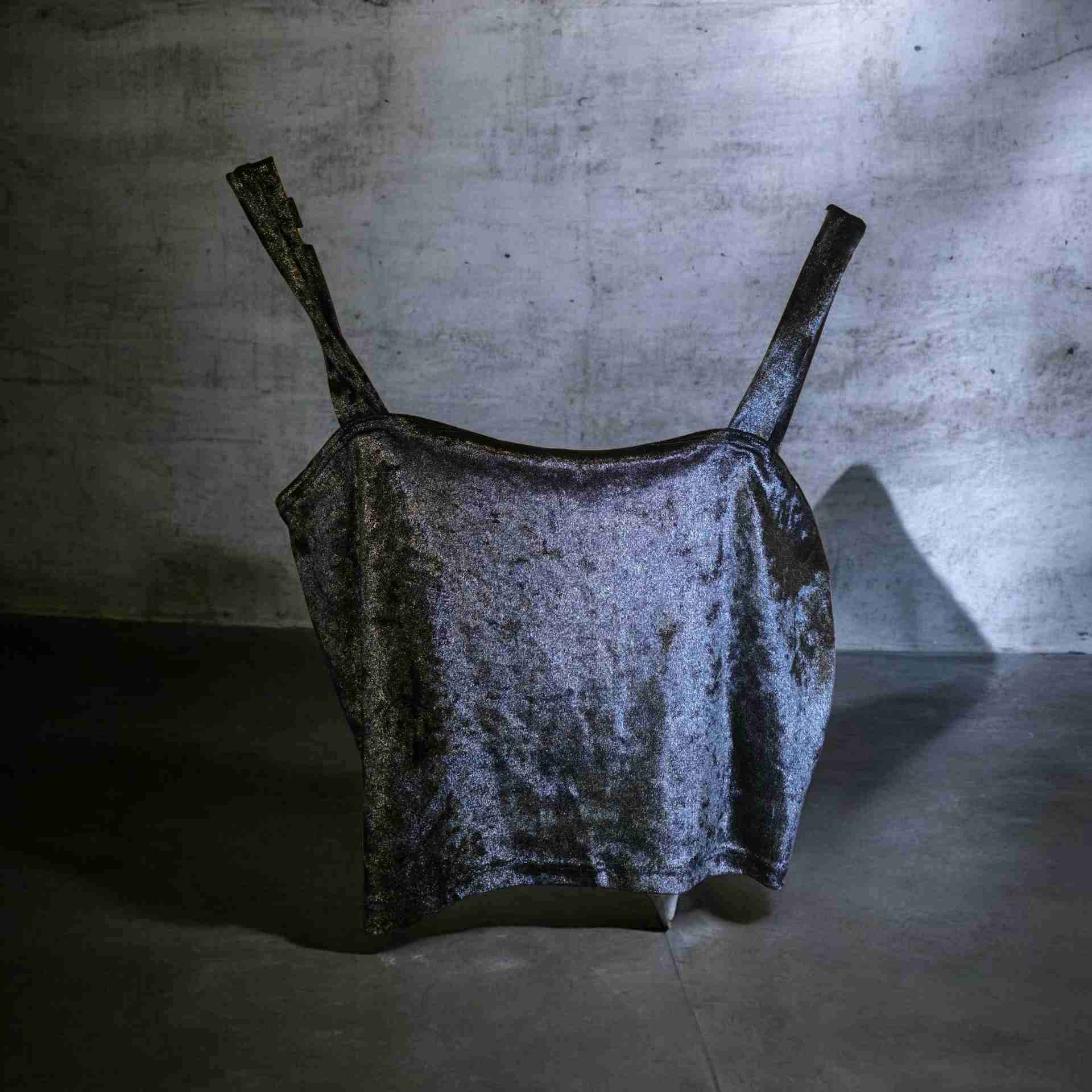 Camiseta de tirantes en negro con brillo elegante. Ideal para ocasiones especiales. En buen estado.
