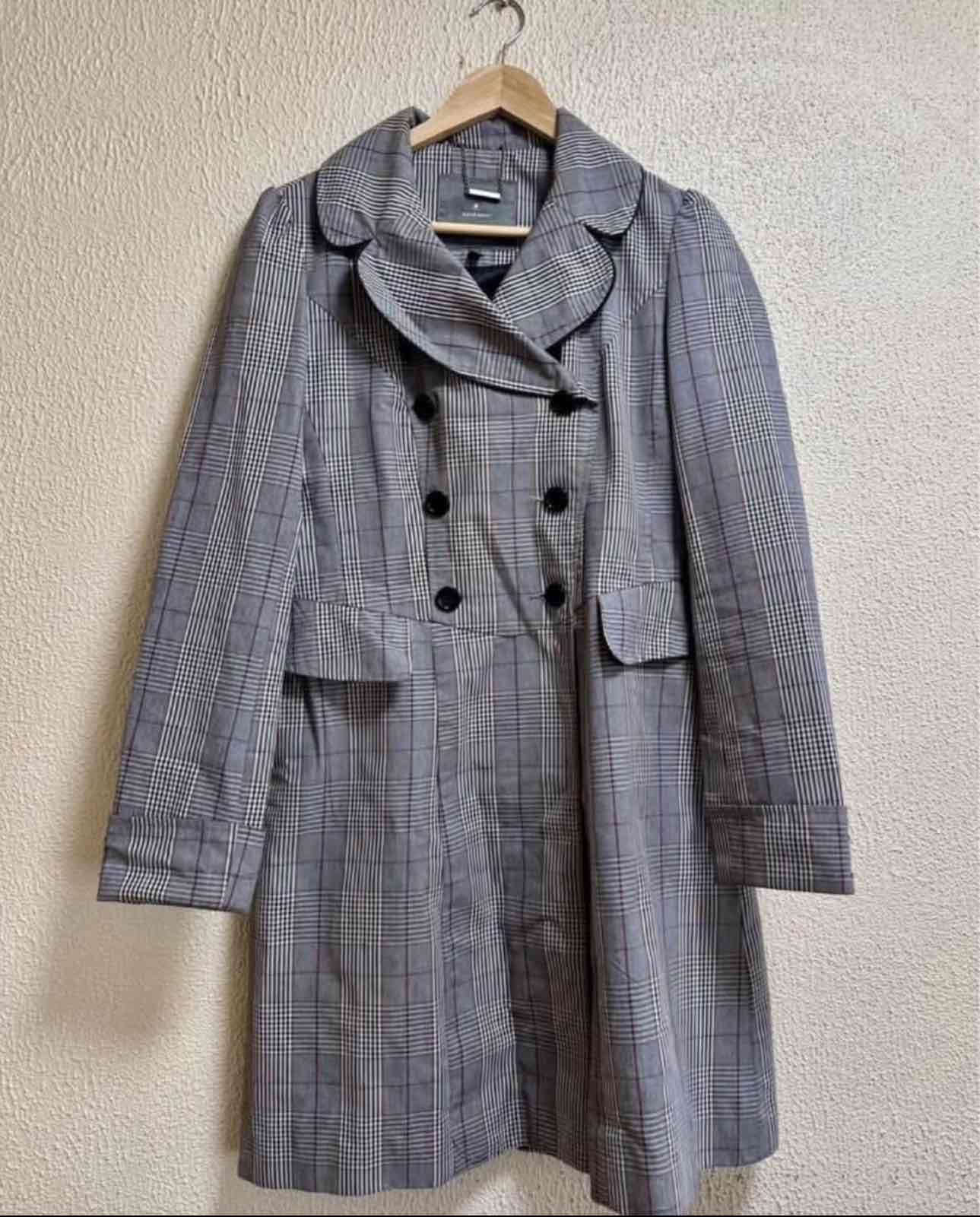 Abrigo a cuadros gris, estilo elegante con botón cruzado. En buen estado, perfecto para el otoño.