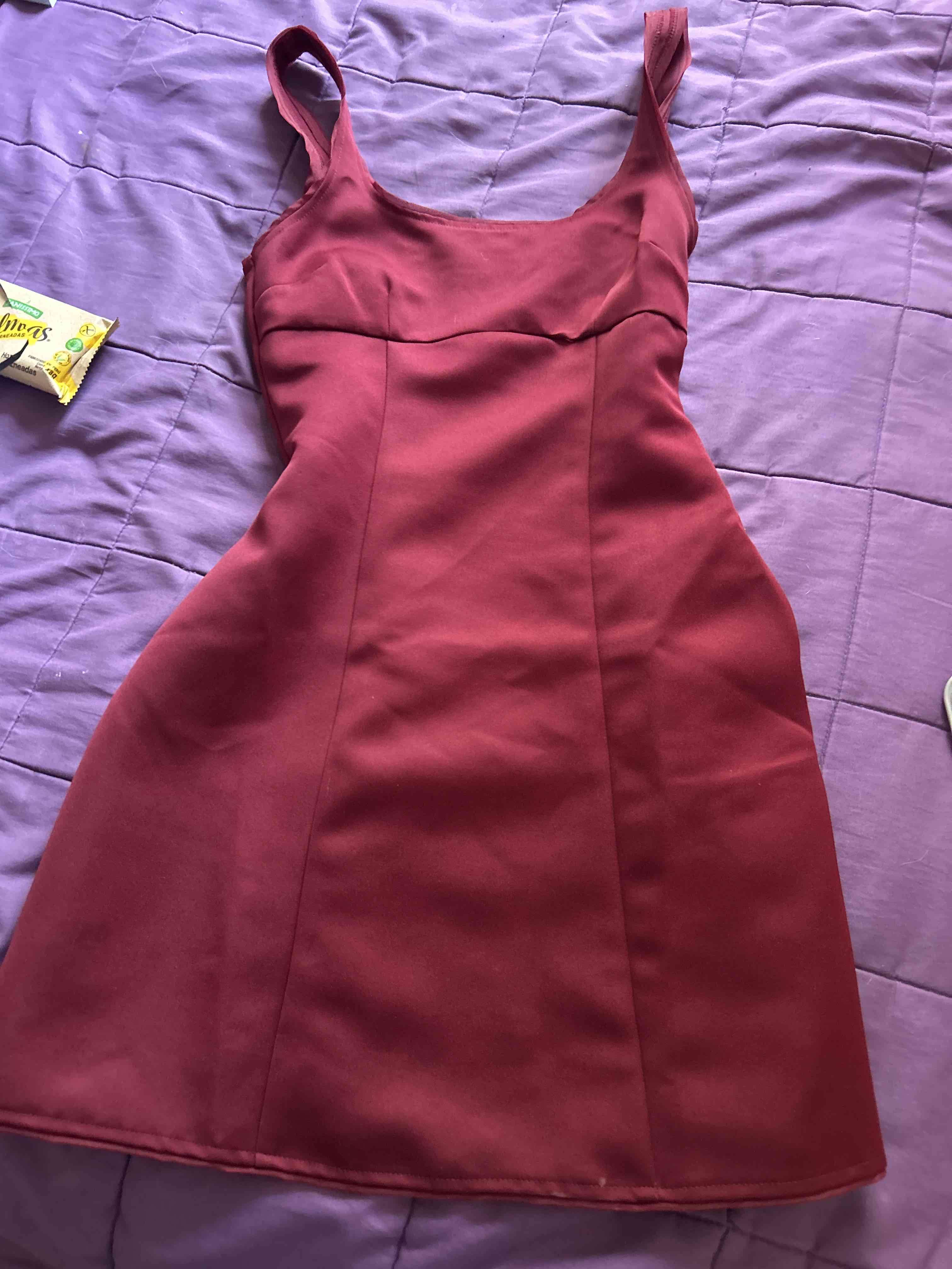Vestido rojo elegante sin mangas, perfecto para ocasiones formales. En buen estado y con estilo clásico.