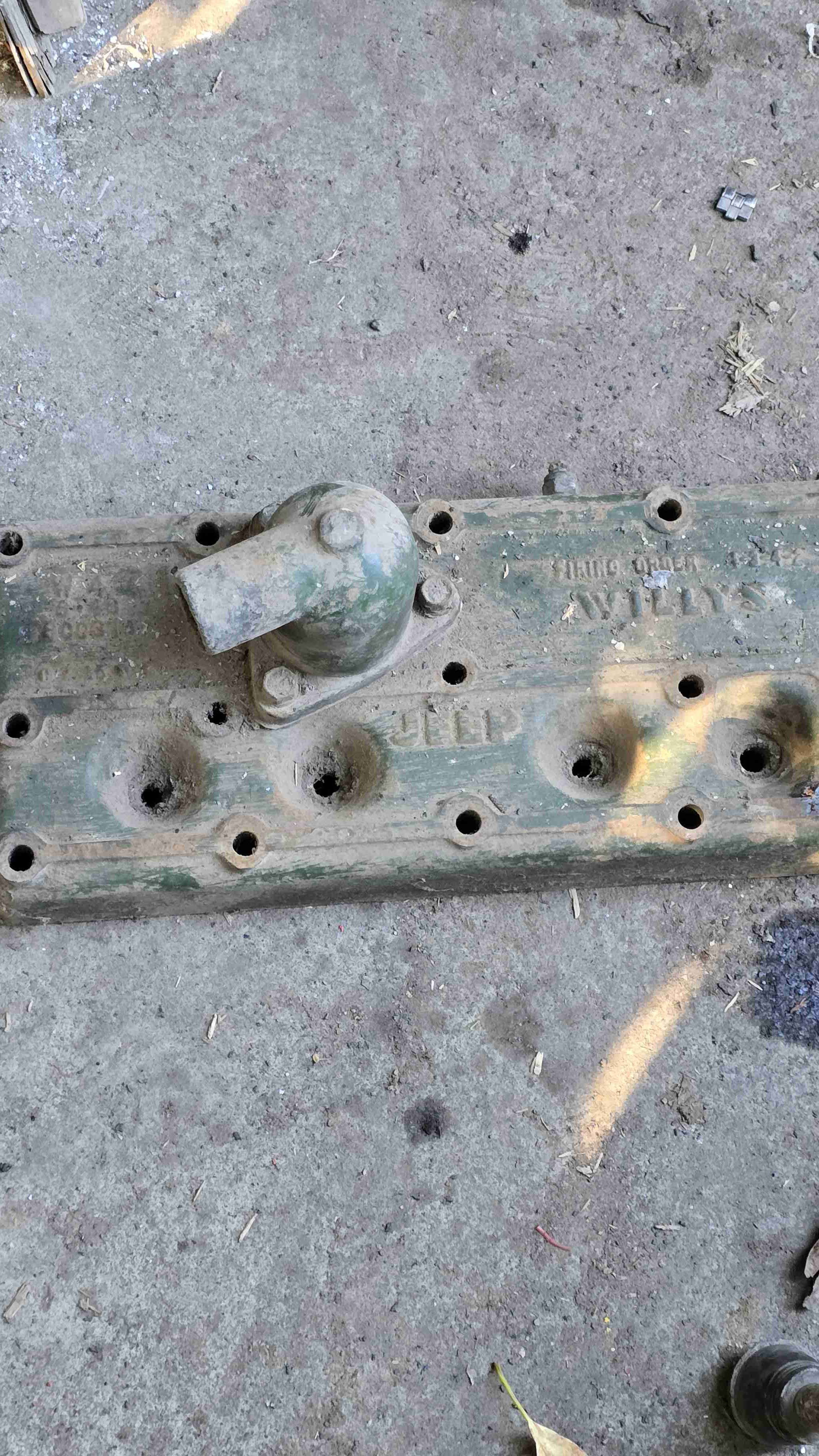 Tapa de motor para Jeep Willys, en estado usado. Ideal para restauración o piezas de repuesto.