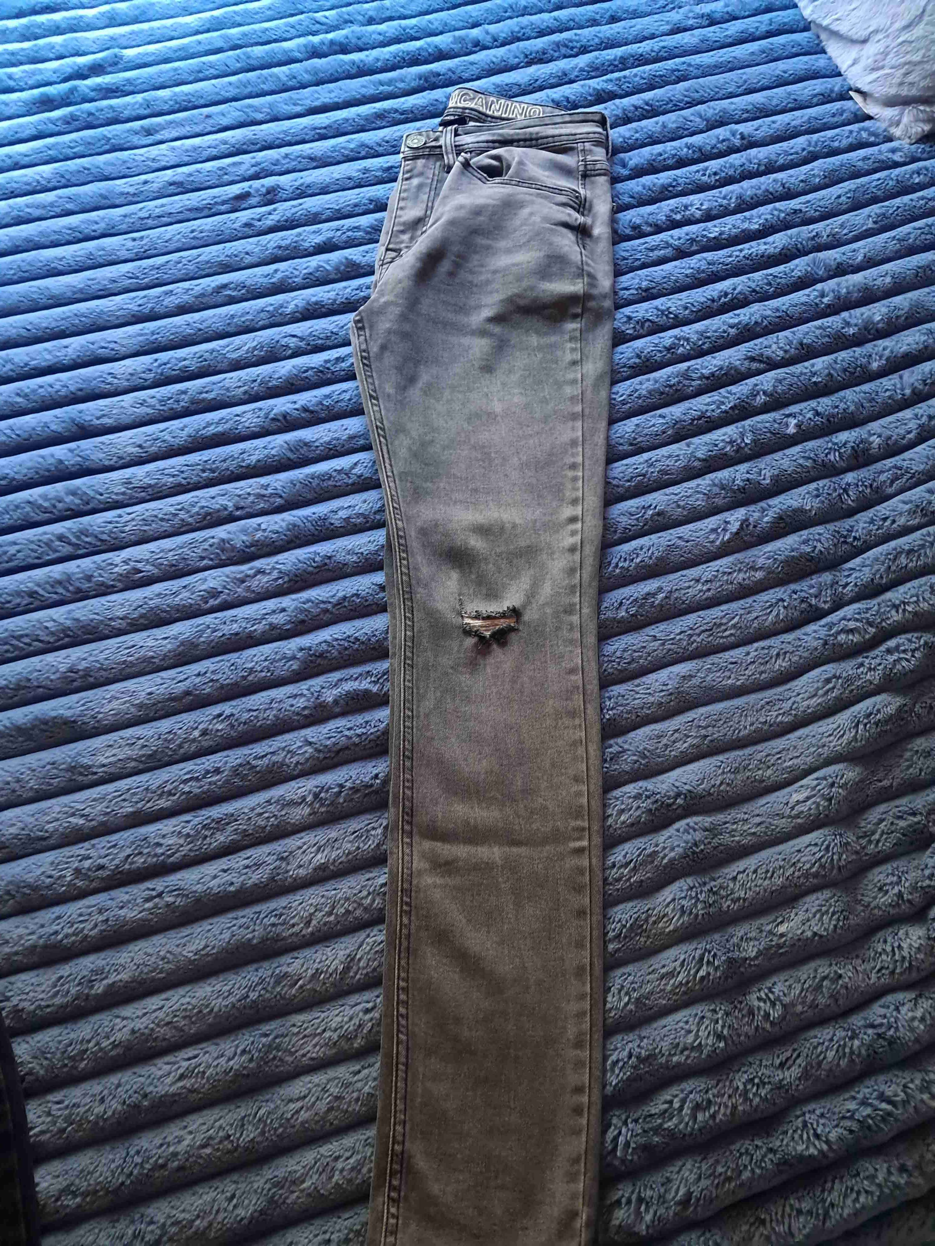 Jeans grises con diseño desgastado. Perfectos para un look casual. En buen estado con signos leves de uso.
