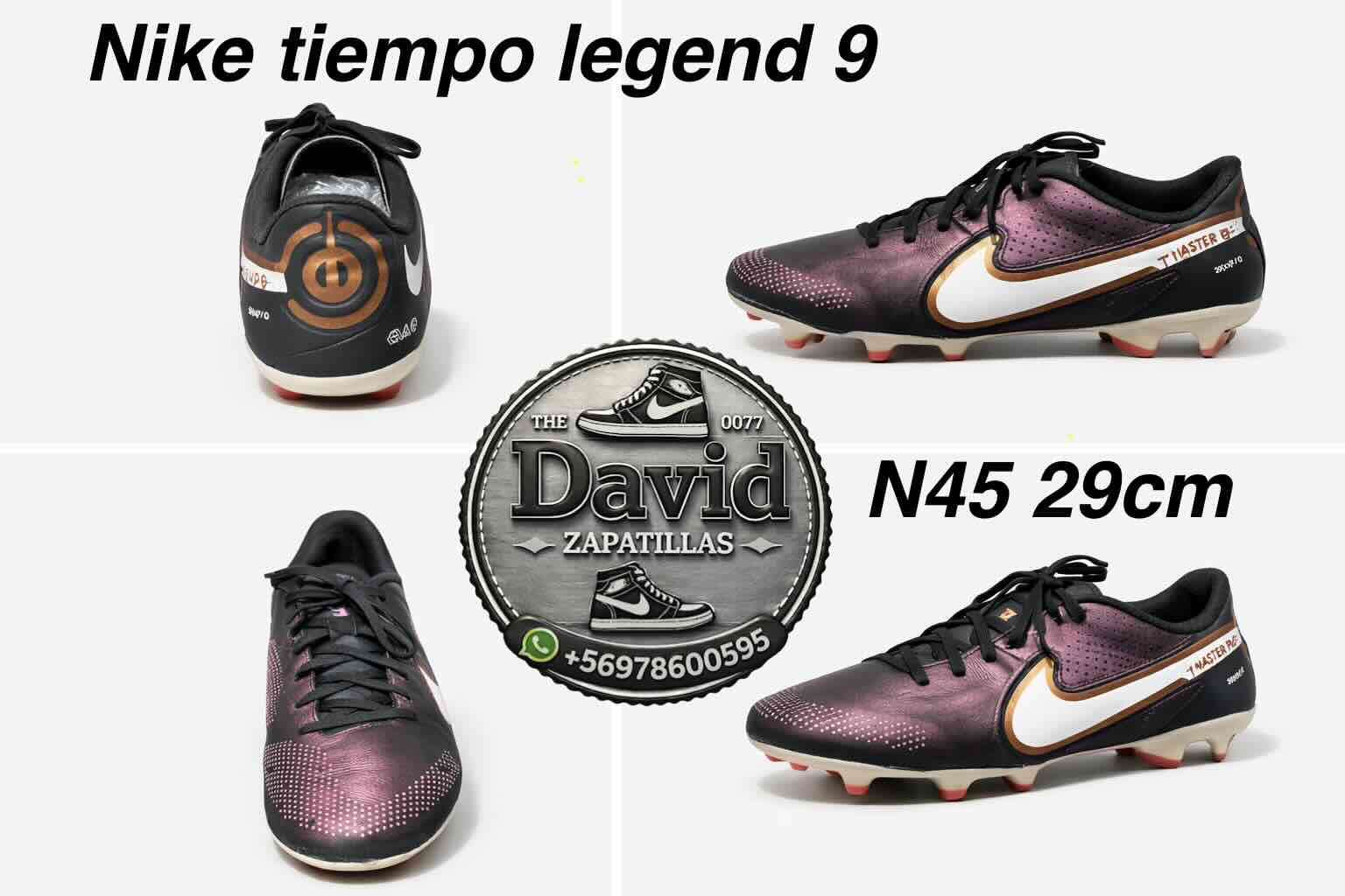 Zapatillas de fútbol Nike en buen estado, ideales para cancha de pasto. Talla 45, color morado con detalles blancos.