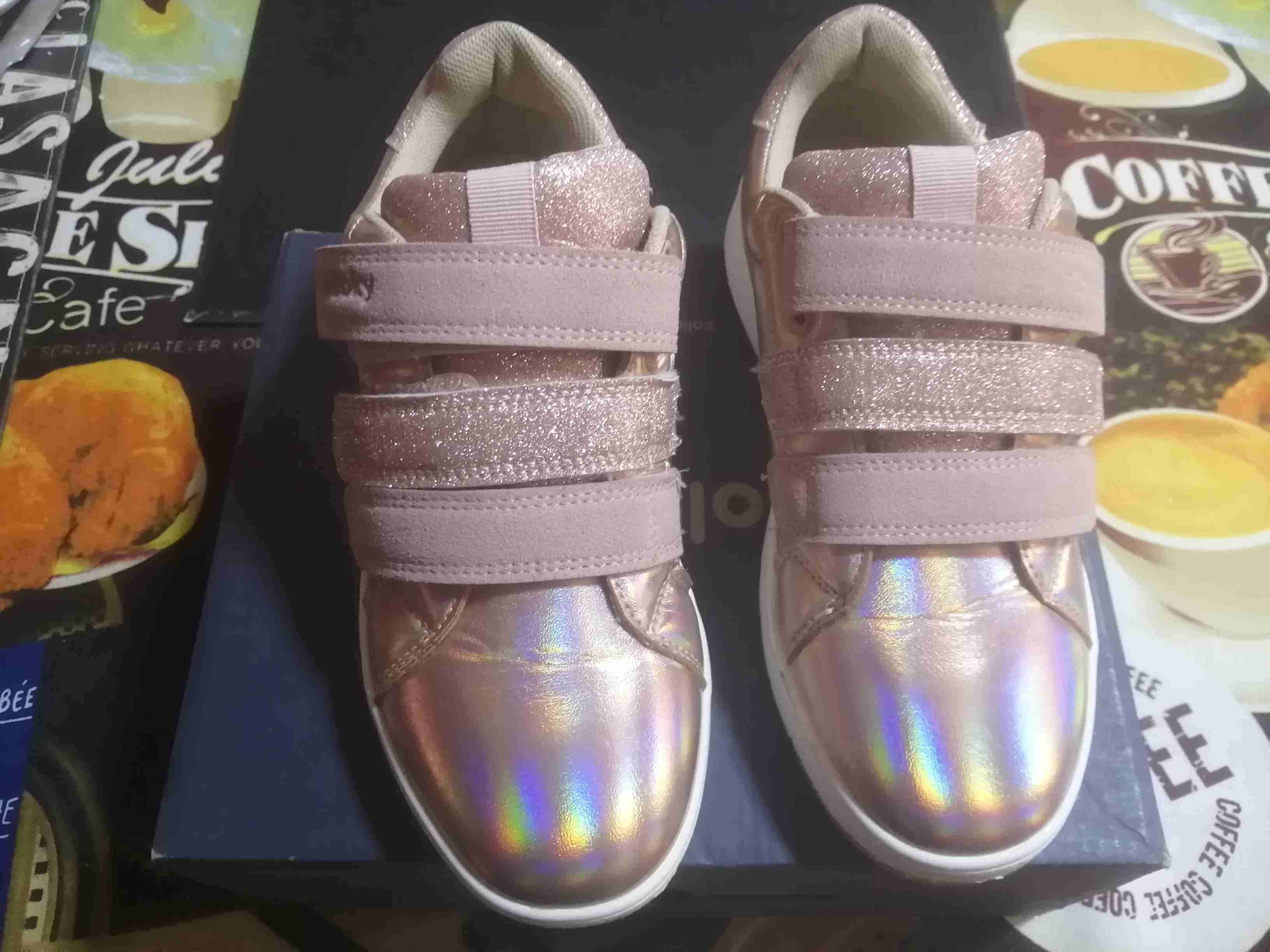 Zapatillas rosas con brillo y cierre de velcro. Perfectas para un look casual y cómodo. En buen estado. Poco uso (( talla 35))