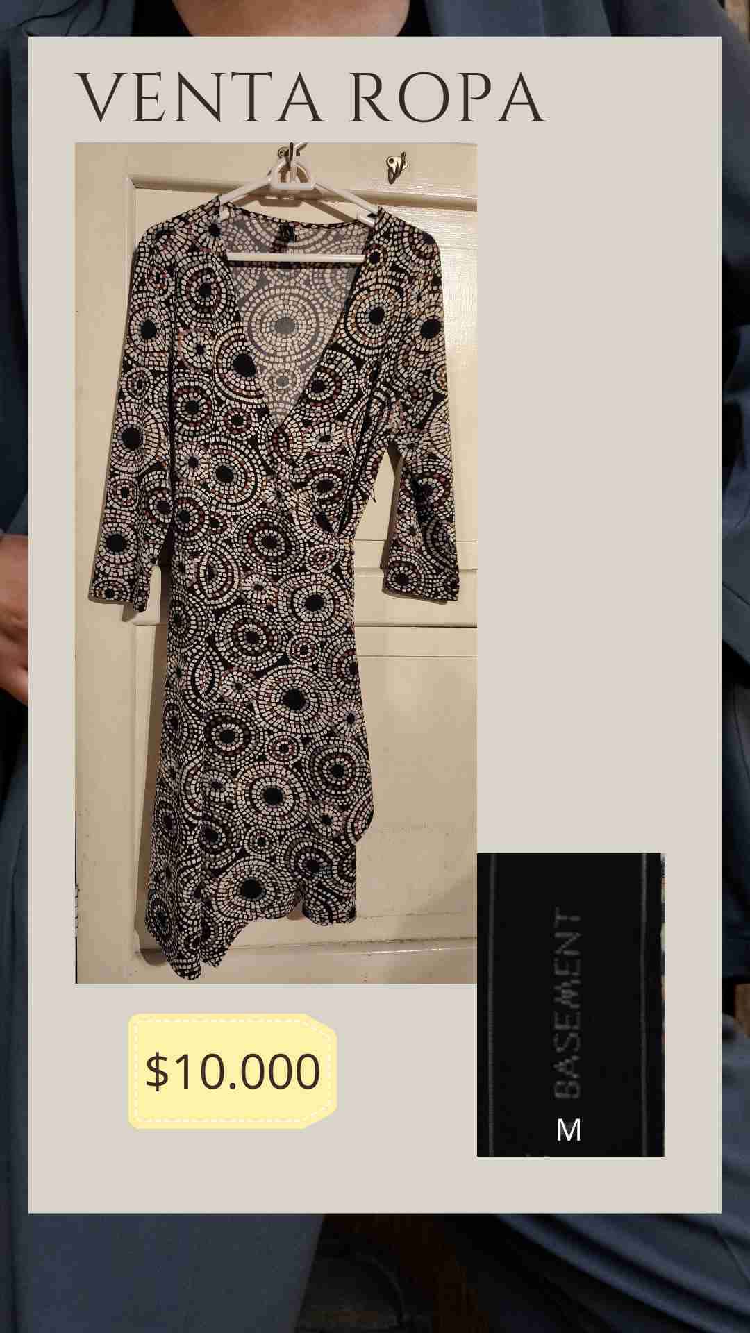 Vestido con diseño geométrico negro y blanco, ideal para eventos casuales. En buen estado.