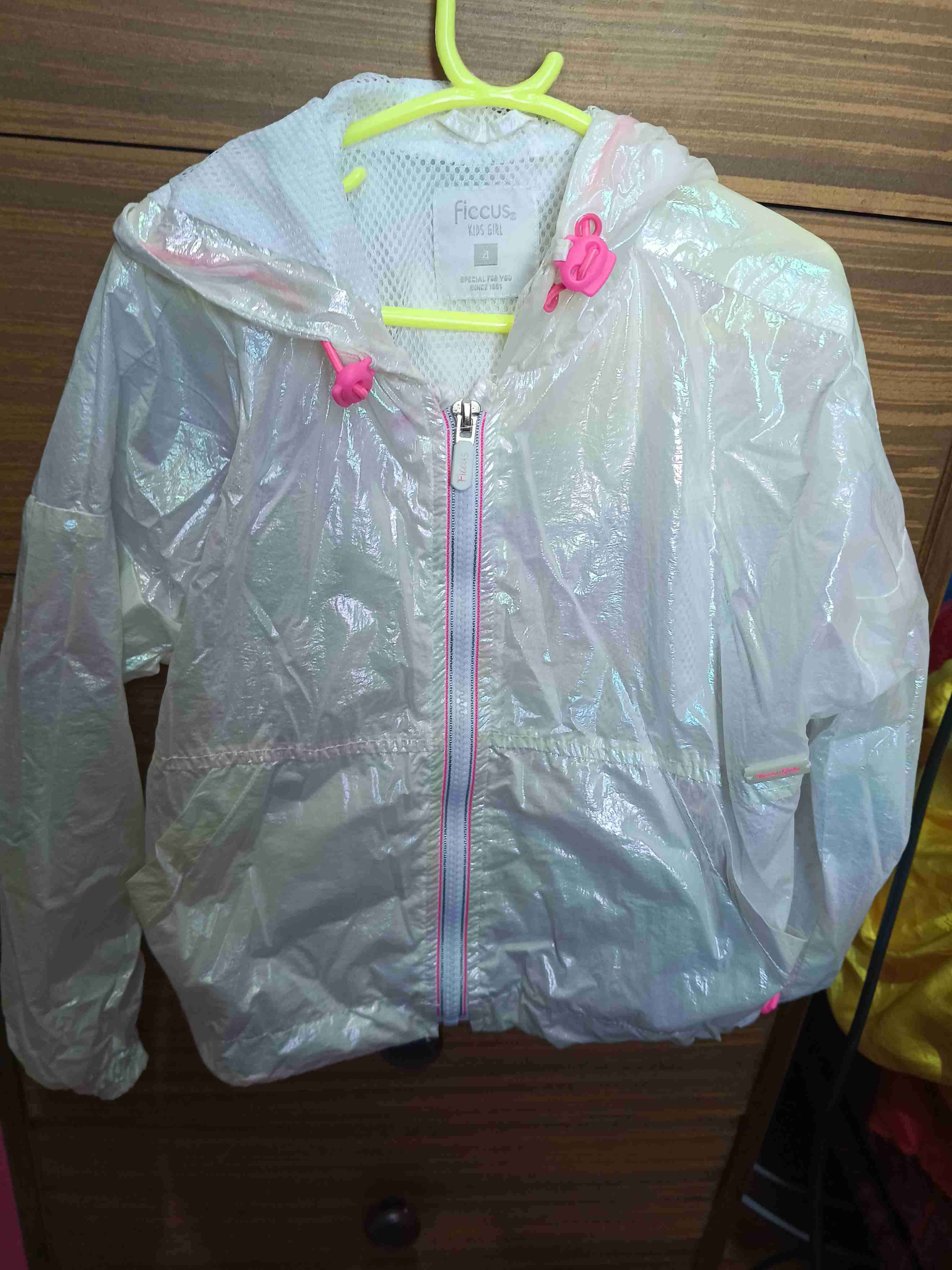 Chaqueta cortaviento para niña en tono holográfico. Ideal para días ventosos. Buen estado general con uso leve.