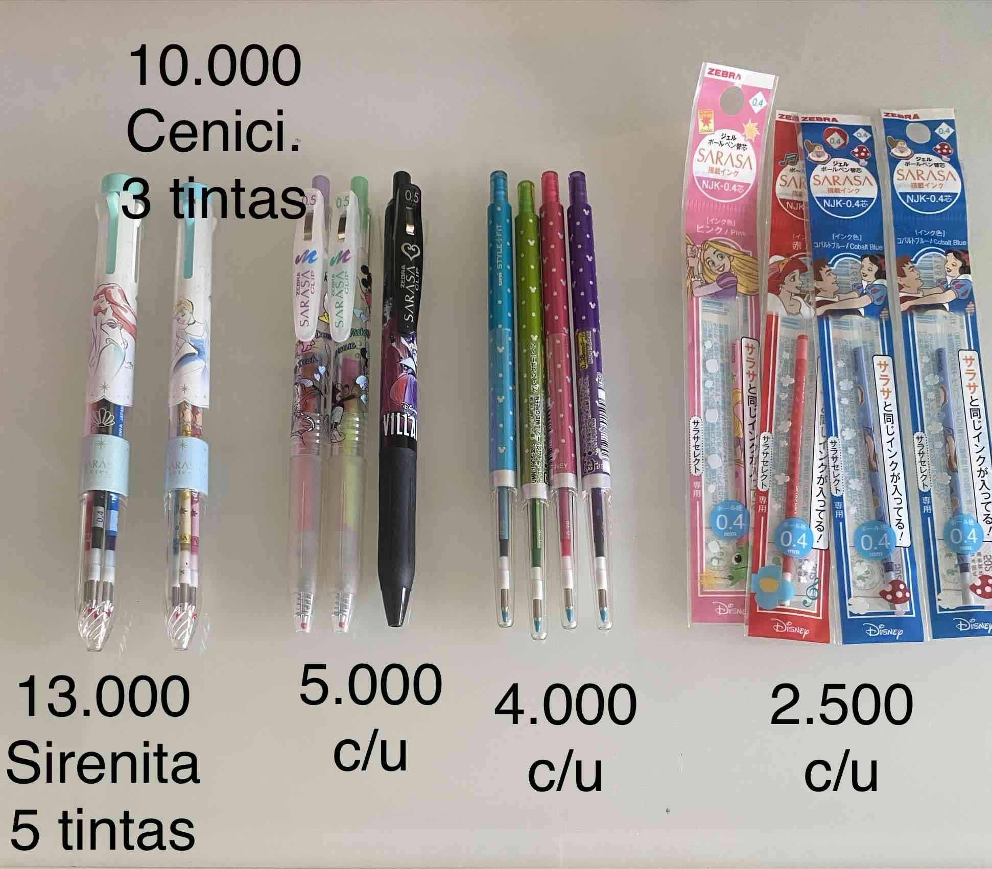 Conjunto de lápices de tinta recargable con diseños de Disney. Ideal para escritura y dibujo. En buen estado.