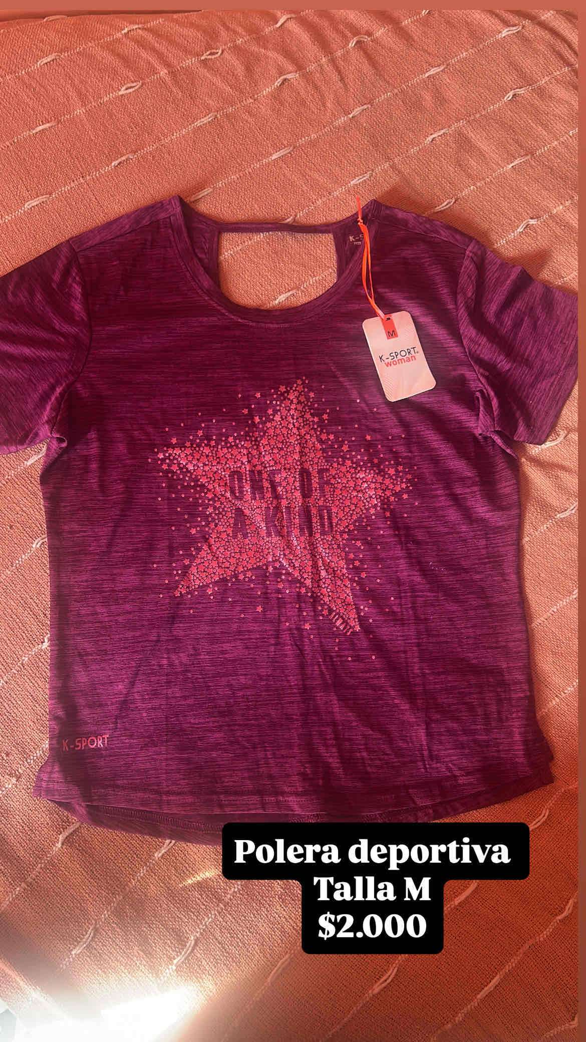Polera deportiva morada talla M con diseño de estrella. Perfecta para entrenar cómodamente.