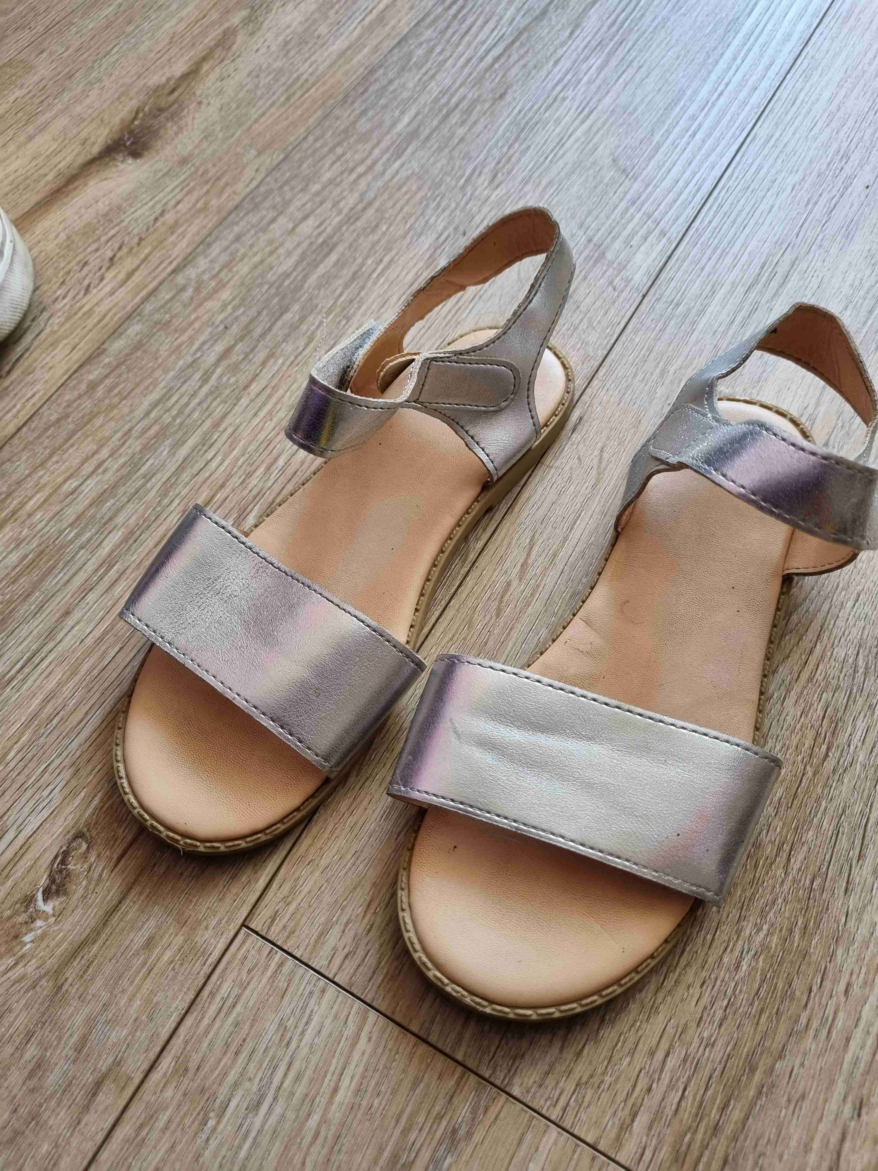 Sandalias con estilo casual en color plateado metálico. Buen estado, perfectas para el verano. Poco uso. Son talla 34.