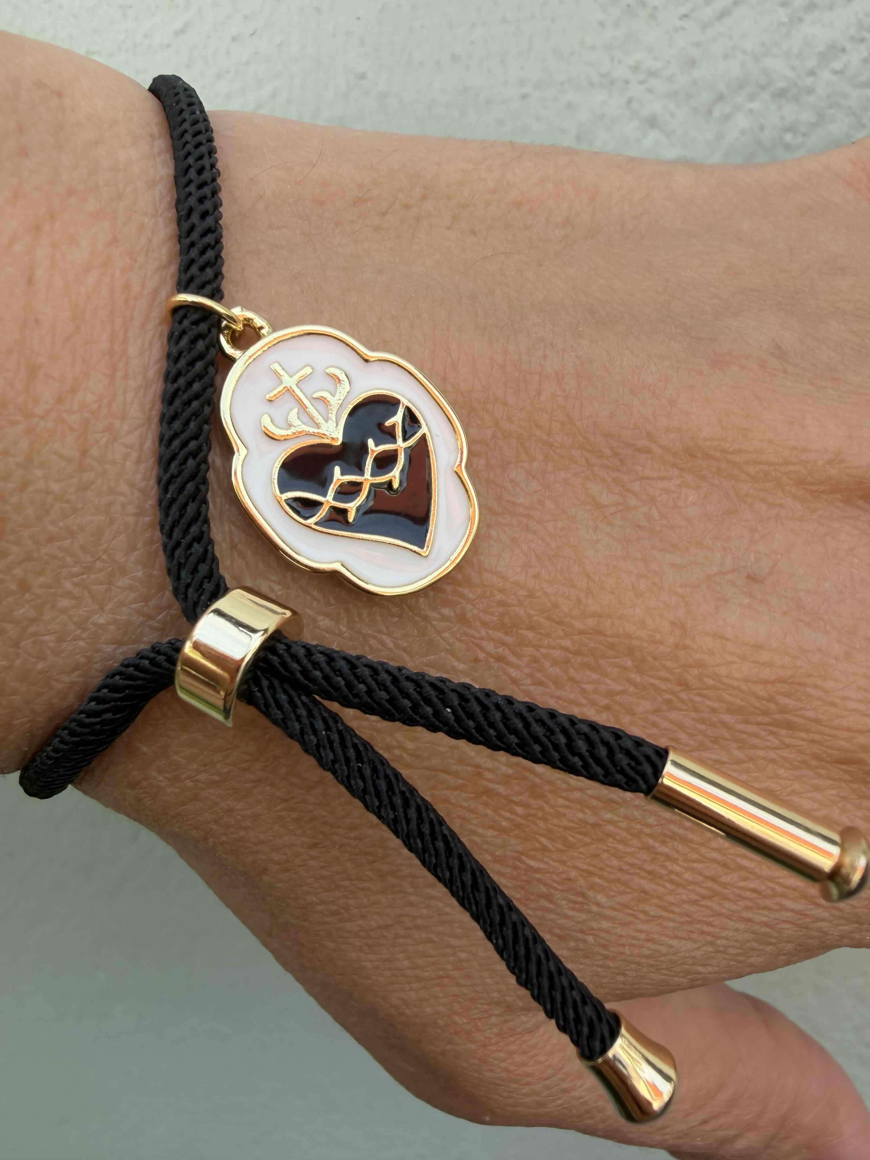 Elegante pulsera con medalla dorada y diseño de corazón en esmalte. Ideal para usar a diario o en ocasiones especiales.