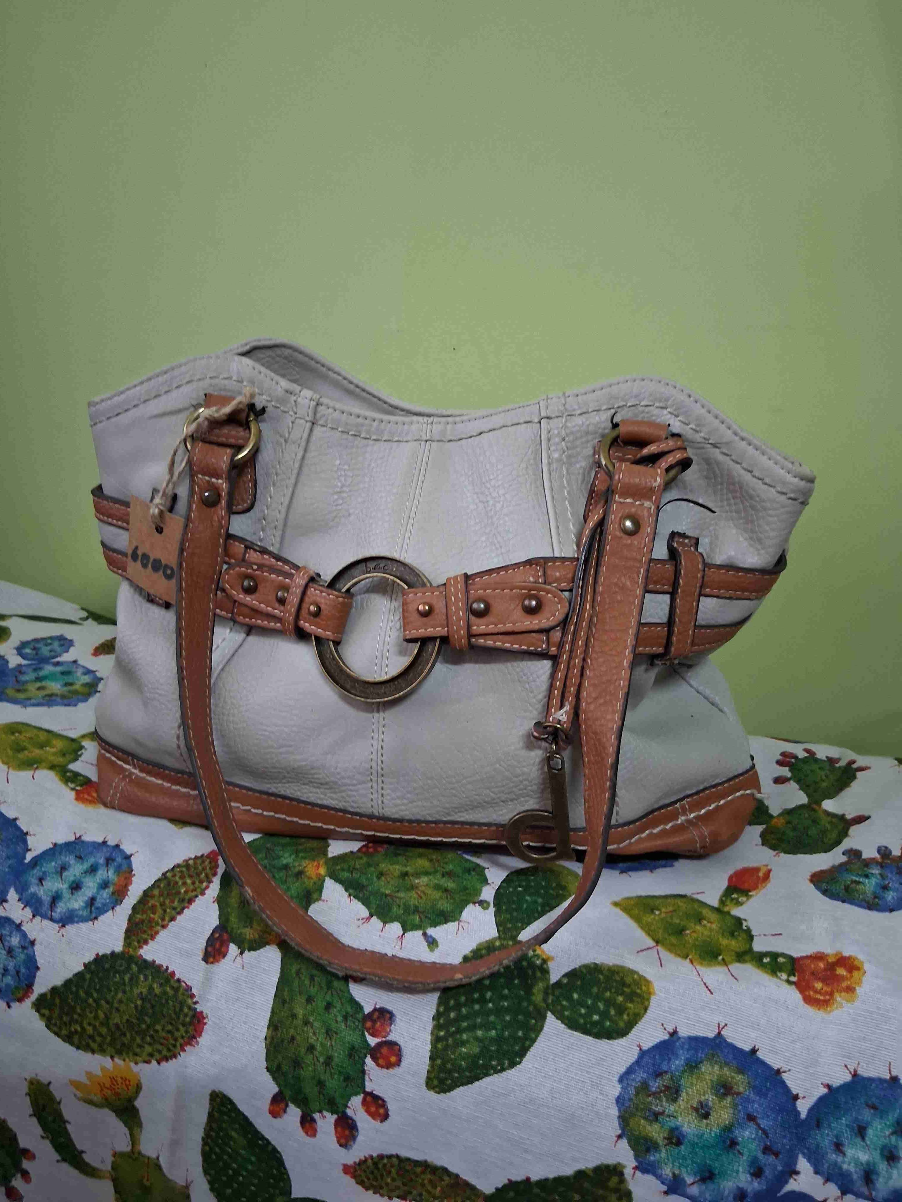Cartera beige con detalles marrones