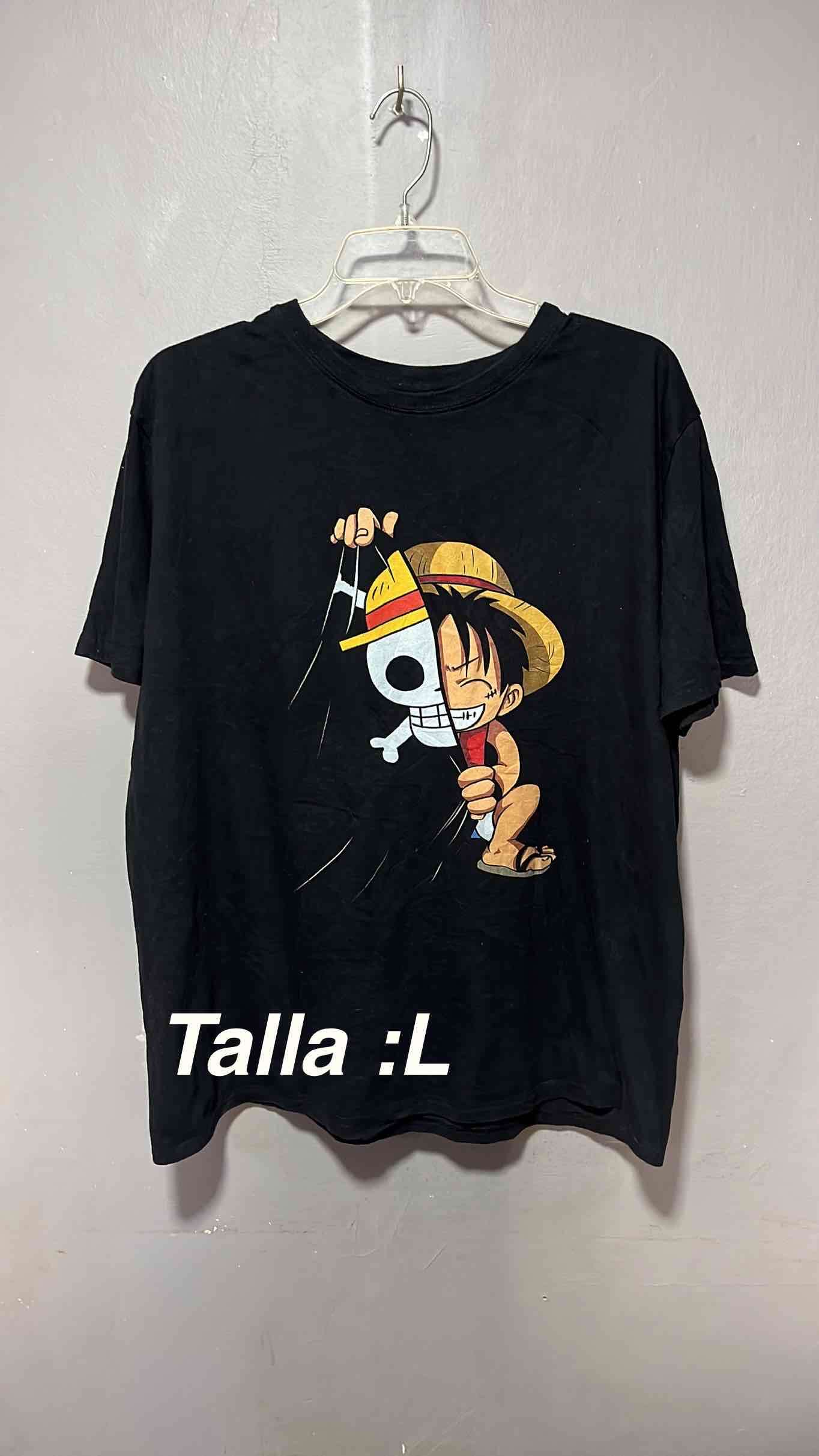 Polera negra con diseño de anime. En buen estado, ideal para fanáticos de la animación japonesa. Perfecta para uso diario.