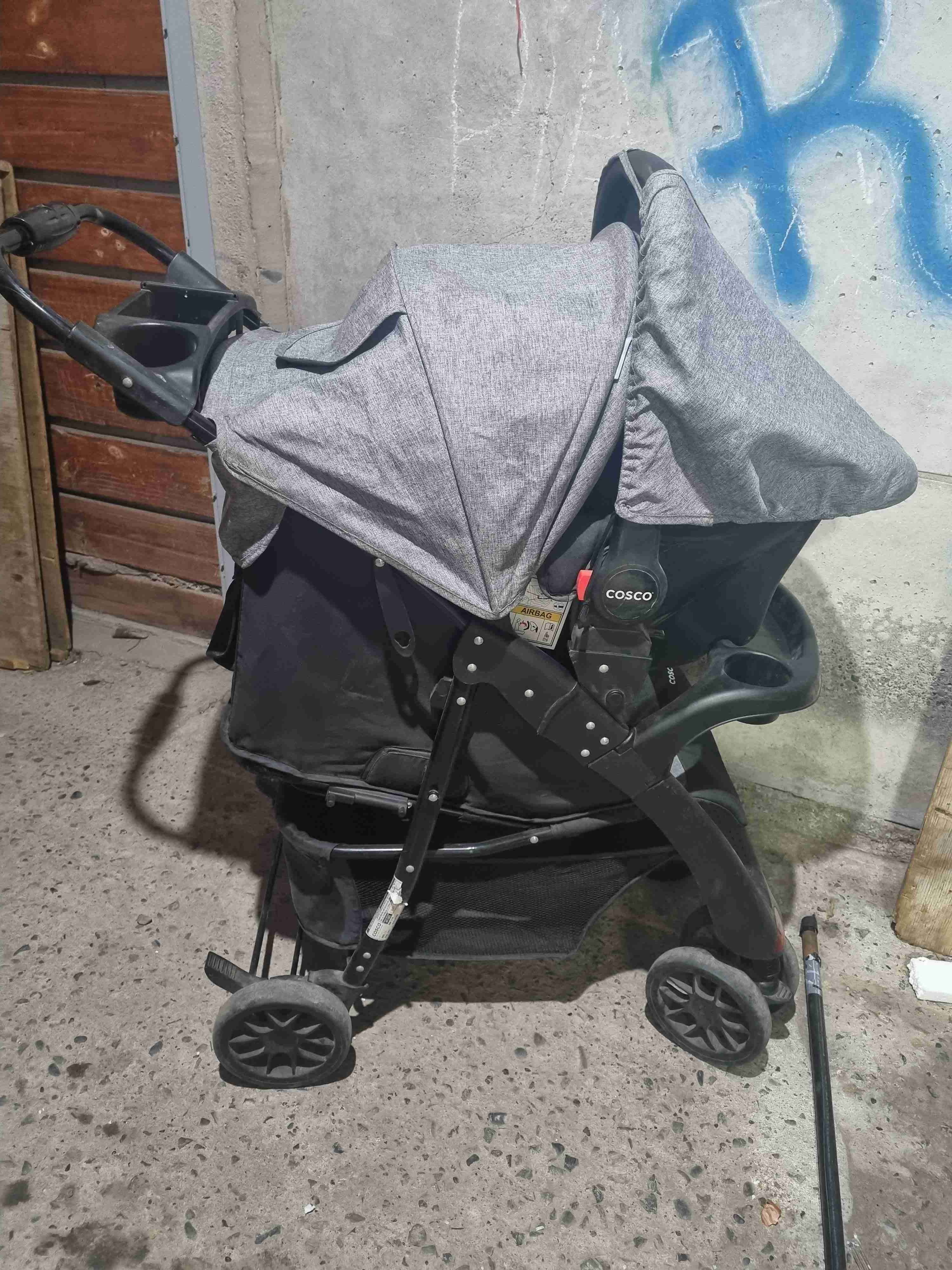 Coche para bebé en buen estado, color gris, ideal para paseos seguros y cómodos.