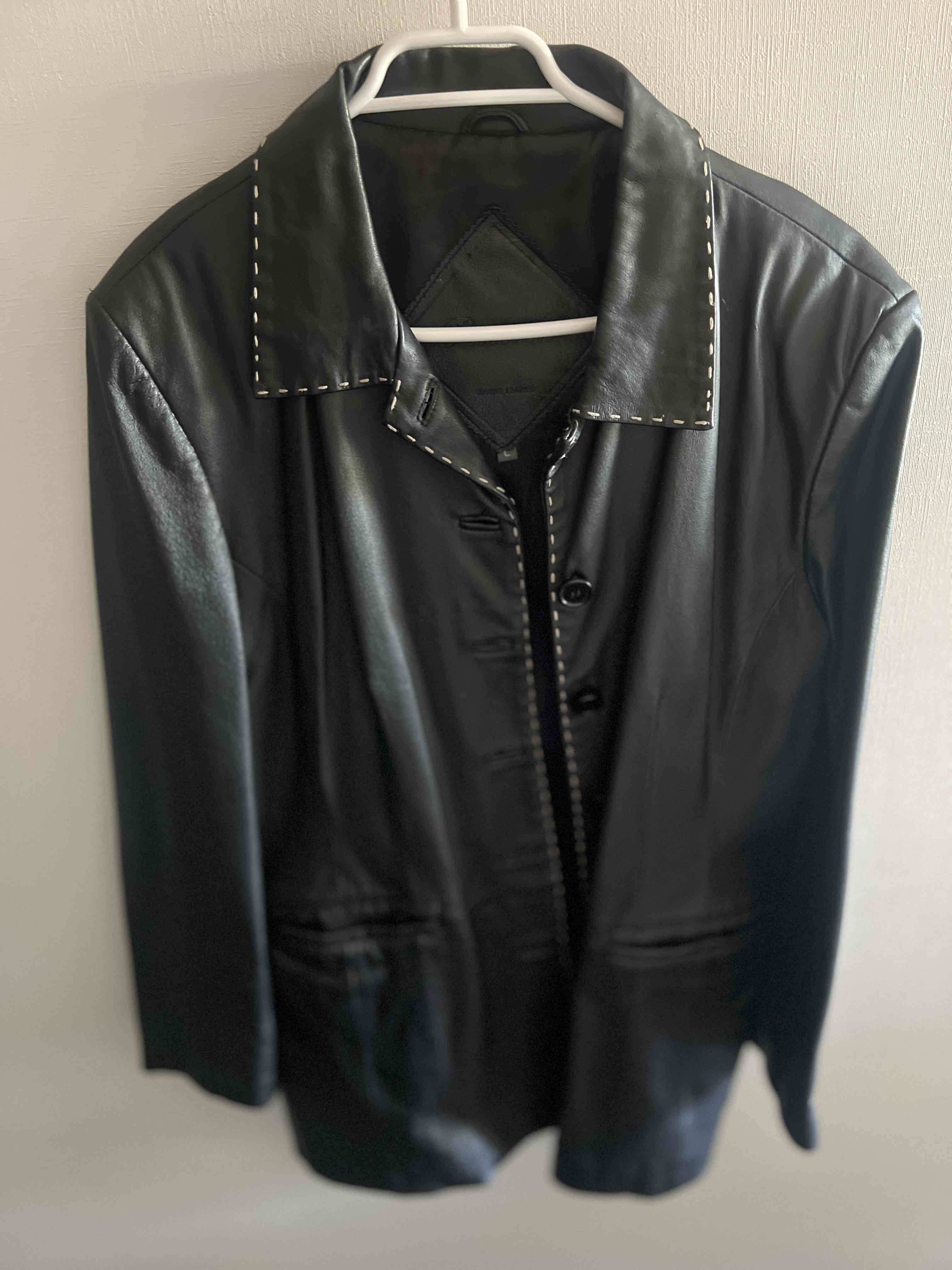 Elegante chaqueta de cuero negro UNISEX con costuras visibles, ideal para ocasiones formales. Se encuentra en excelente estado. Medidas: Largo 78 cms. Pecho 52 cms. Ancho 54 cms. Color negro
