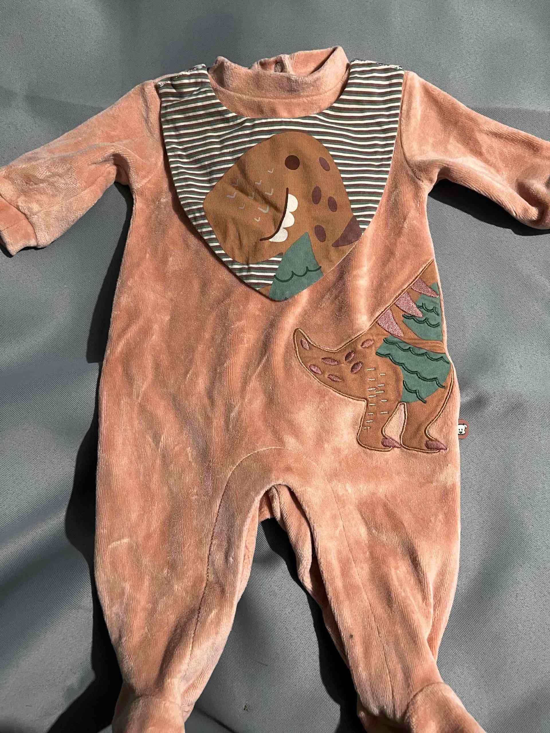 Enterito de bebé suave y acogedor con diseño de dinosaurio en tonos marrones. Ideal para mantener a tu pequeño abrigado.