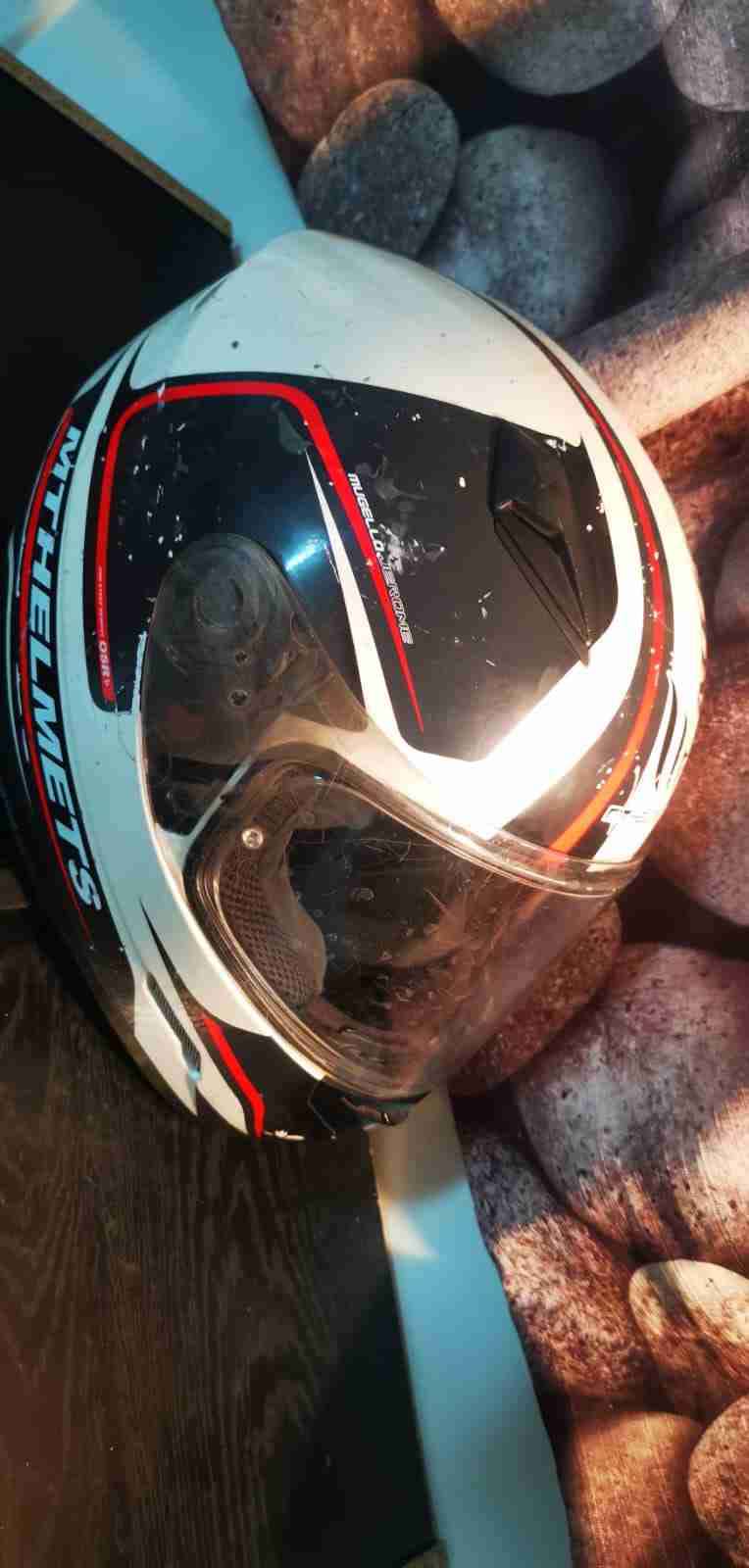 Casco integral para motocicleta en buen estado. Diseño moderno, ideal para protección en carretera.