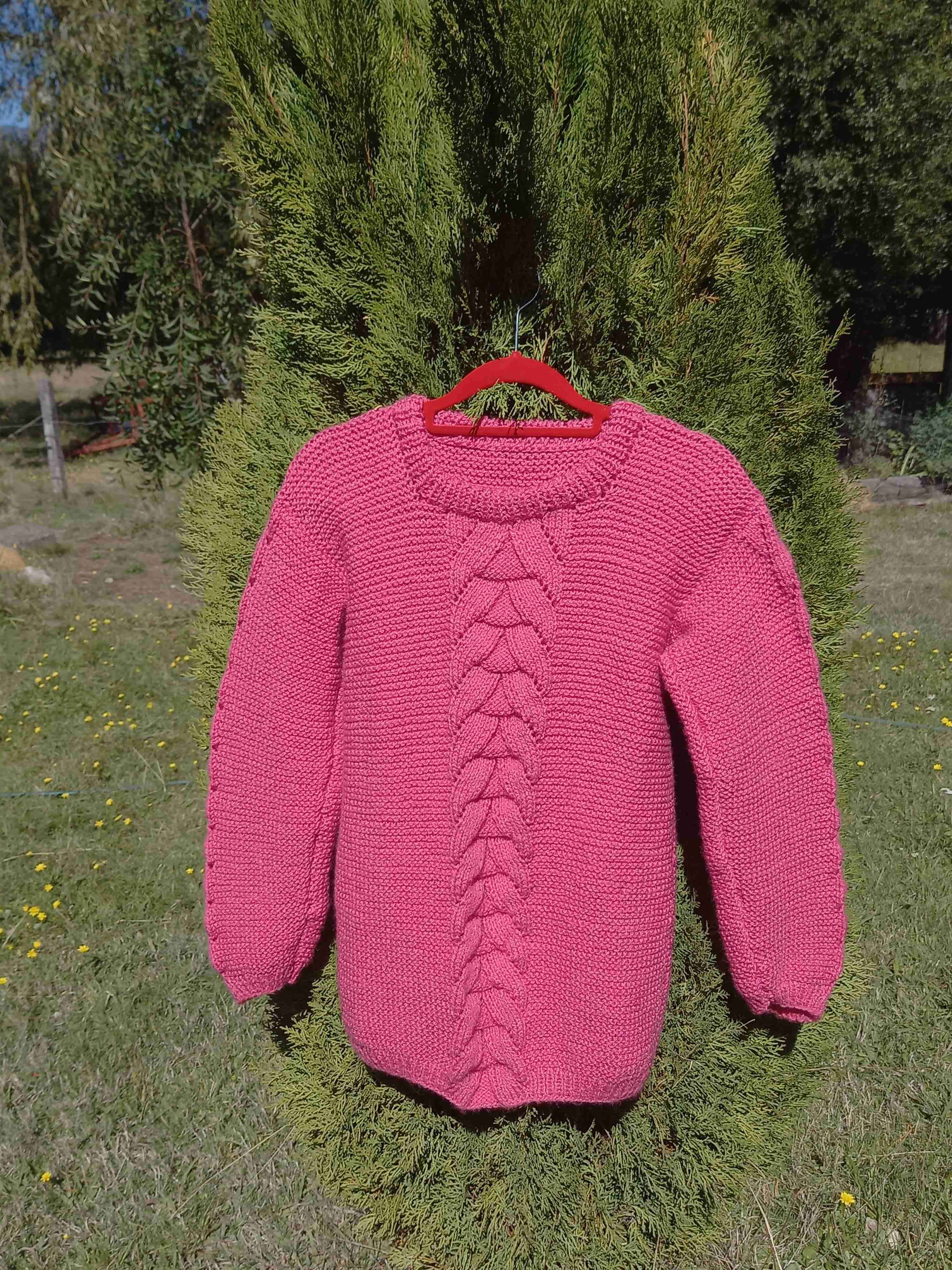 Suéter rosado tejido a mano