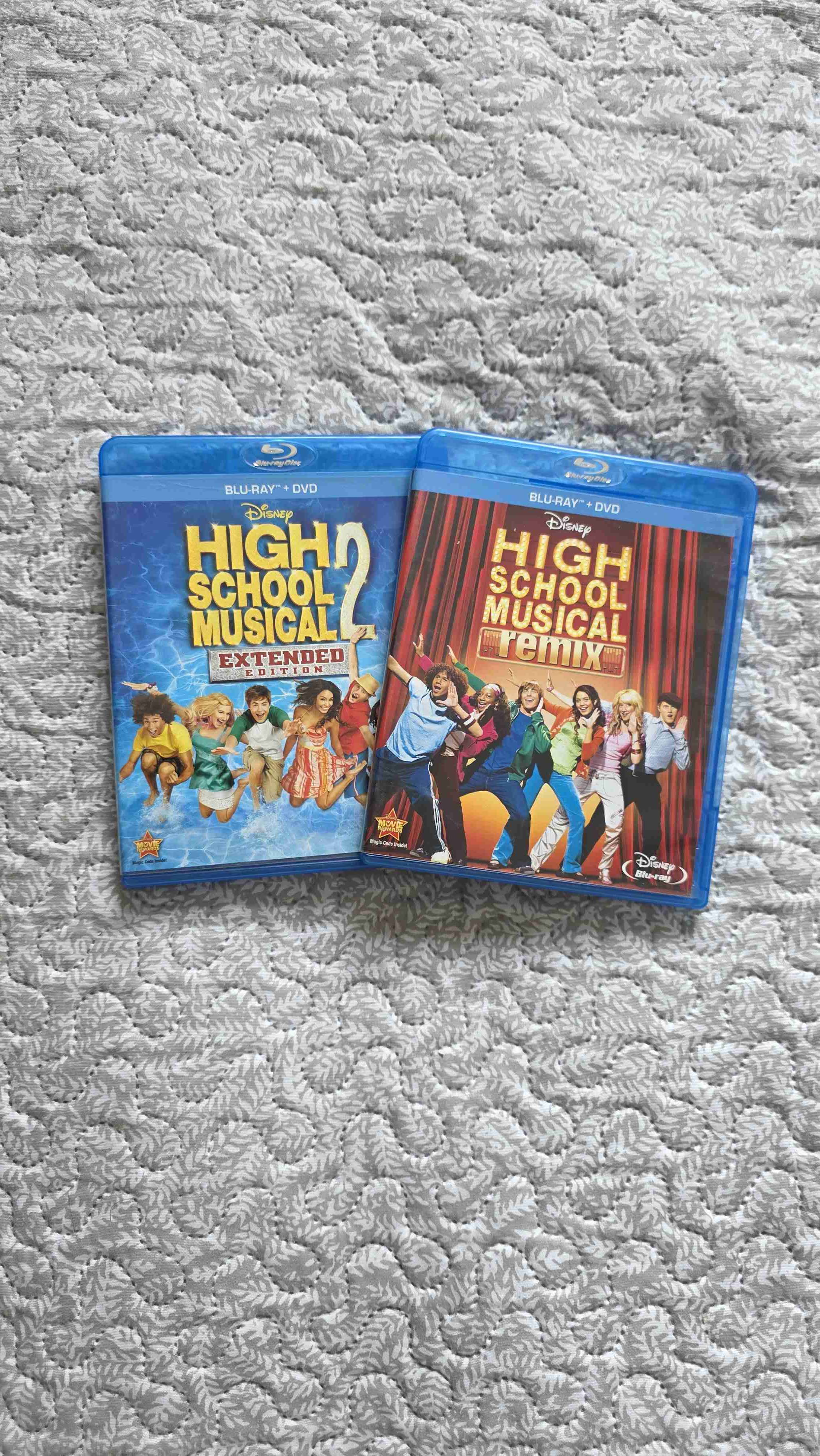 Pack de Blu-ray de High School Musical. Incluye las ediciones extendidas de las dos primeras películas. En buen estado y listo para coleccionistas.