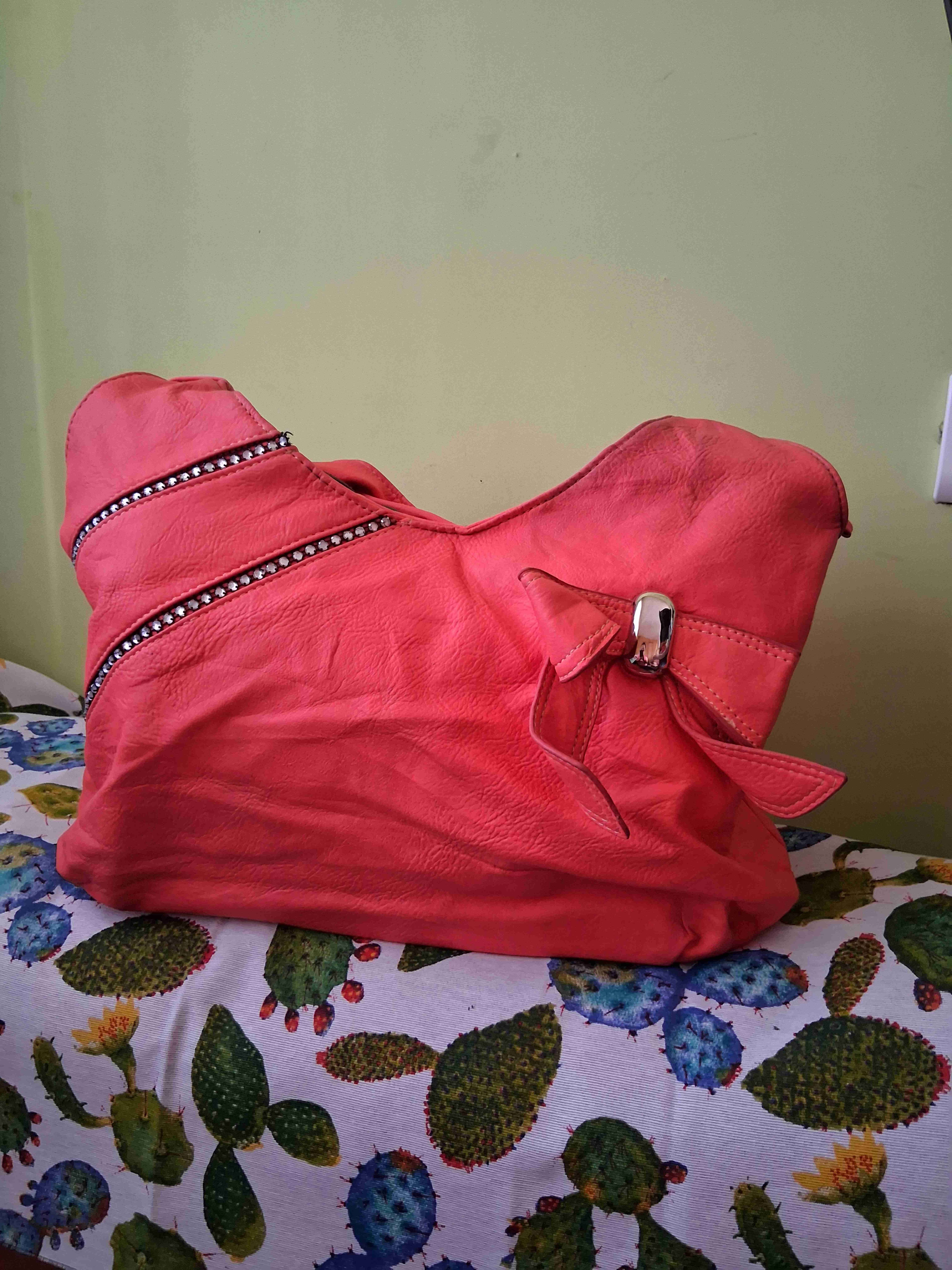 Cartera grande de color rojo con detalle de lazo. Ideal para uso diario, en buenas condiciones.