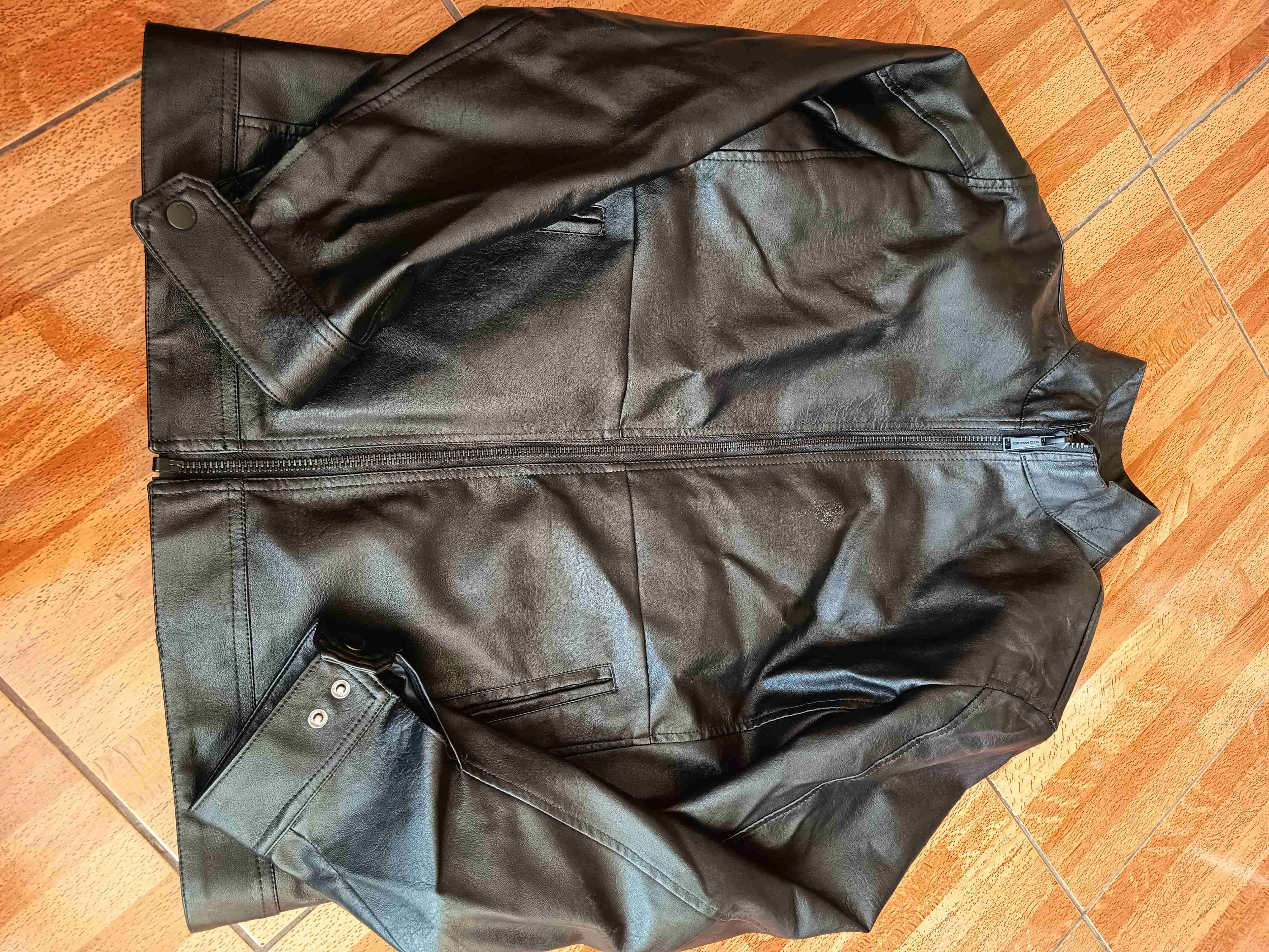 Chaqueta estilo motociclista de cuero negro, en buen estado. Ideal para uso casual o urbano.