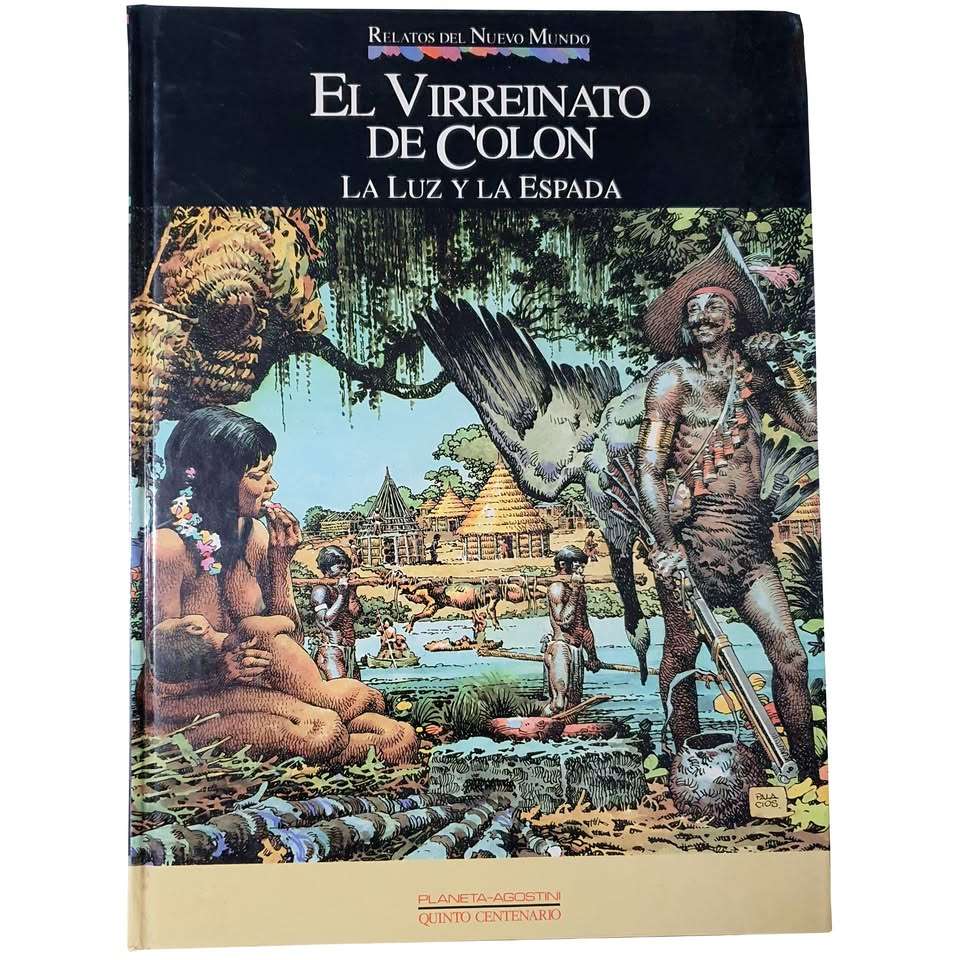 Título del Libro: El Virreinato de Colón Subtítulo del libro: La Luz y la Espada Serie: Relatos del Nuevo Mundo Autor: Tabertero de la Linde, Hernández Idioma: Español Editorial del libro: Planeta-Agostini Edición del libro: PRIMERA EDICIÓN Tapa del libro: Dura Volumen del libro: 3 Año de publicación: 1992 Otras características Cantidad de páginas: 80 Altura: 33 cm Ancho: 25 cm Género del libro: Historia Tamaño del libro: Grande Quinto Centenario. Cómic con viñetas en color y parte de referencia histórica con reproducciones color y b/n. Editorial: Planeta Agostini Cartoné editorial Páginas: 53 de cómic y 24 de referencia histórica Tamaño: 25x33 cm Edición: 1992. La luz y la espada completa la imagen de Cristóbal Colón, el Almirante. En este Volumen se reflejan sus días de gloria y también momentos amargos, las intrigas que lo condujeron a regresar prisionero a España, desde ese Nuevo Mundo que había descubierto. Pero más allá de la historia de un hombre, en estas páginas están presentes los españoles que se quedaron en el nuevo mundo, sus relaciones a menudo turbulentas con los indígenas, la voluntad que los llevó a fundar ciudades, a permanecer, en suma, en el Nuevo Mundo. Se trata de comics que, por su calidad gráfica y conceptual, reivindican la validez de ese soporte. Es este lenguaje icónico inmediato y apasionante el que impregna toda la serie con la magia y la poesía de las narraciones de aventuras. Sin embargo, RELATOS DEL NUEVO MUNDO es una apuesta más amplia: se propone ser una obra de divulgación y consulta, pretende conjugar una concepción actual del diseño con una profunda revisión histórica de los acontecimientos. Porque toda la serie en la puesta en página de la estrecha colaboración entre algunos de los más prestigiosos creadores de comics y e equipo de historiadores y documentalistas que una obra de estas características requiere.