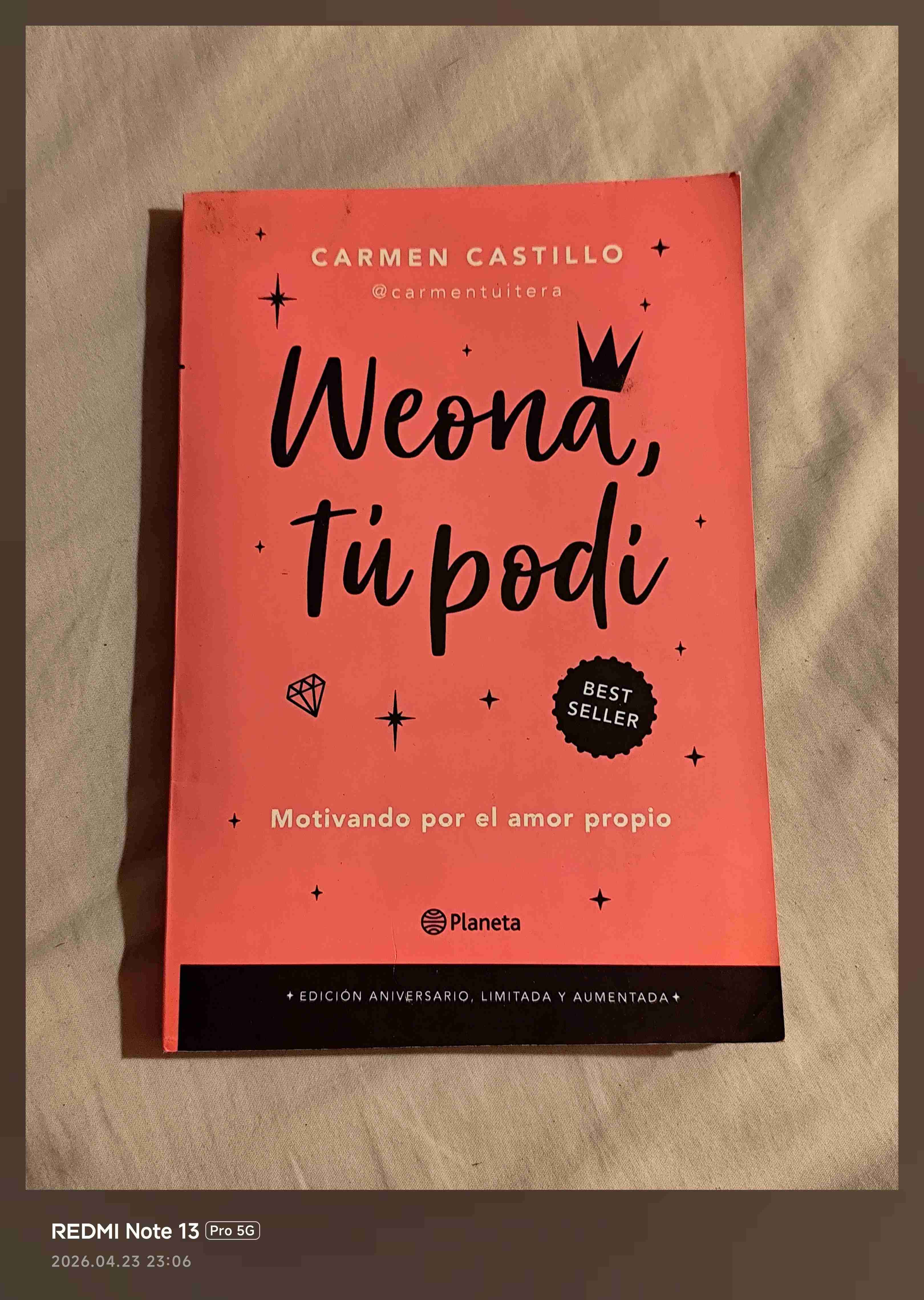 ¡Potencia tu amor propio con este Best Seller! Vendo el libro de Carmen Castillo (@carmentuitera), una lectura cercana, directa y motivadora diseñada para subir el ánimo y fortalecer la seguridad personal.