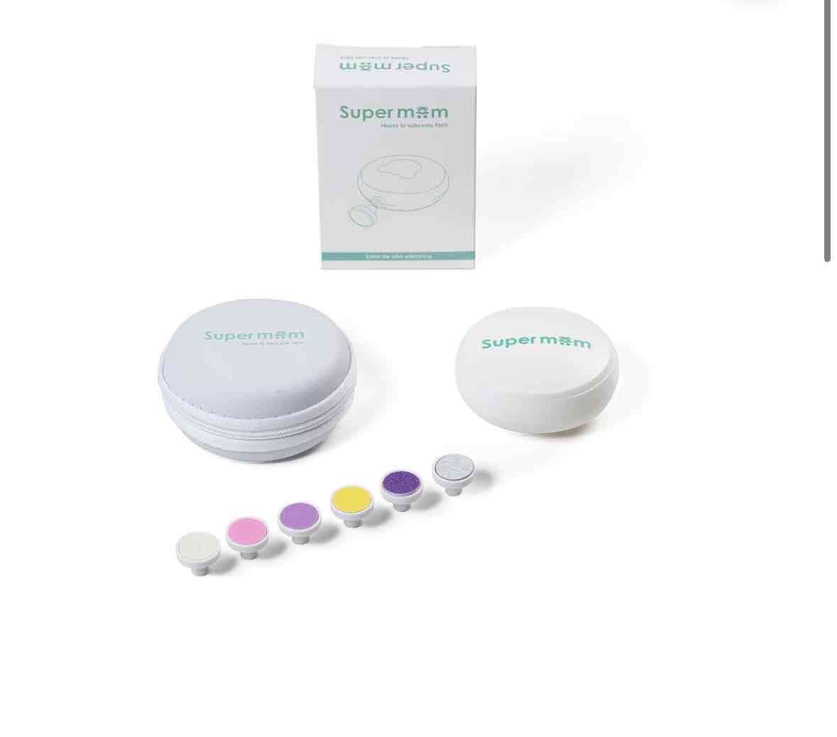 Limador de uñas Supermom con Kit de lima para el cuidado de las uñas bebé, incluye diferentes cabezales. Trae estuche.