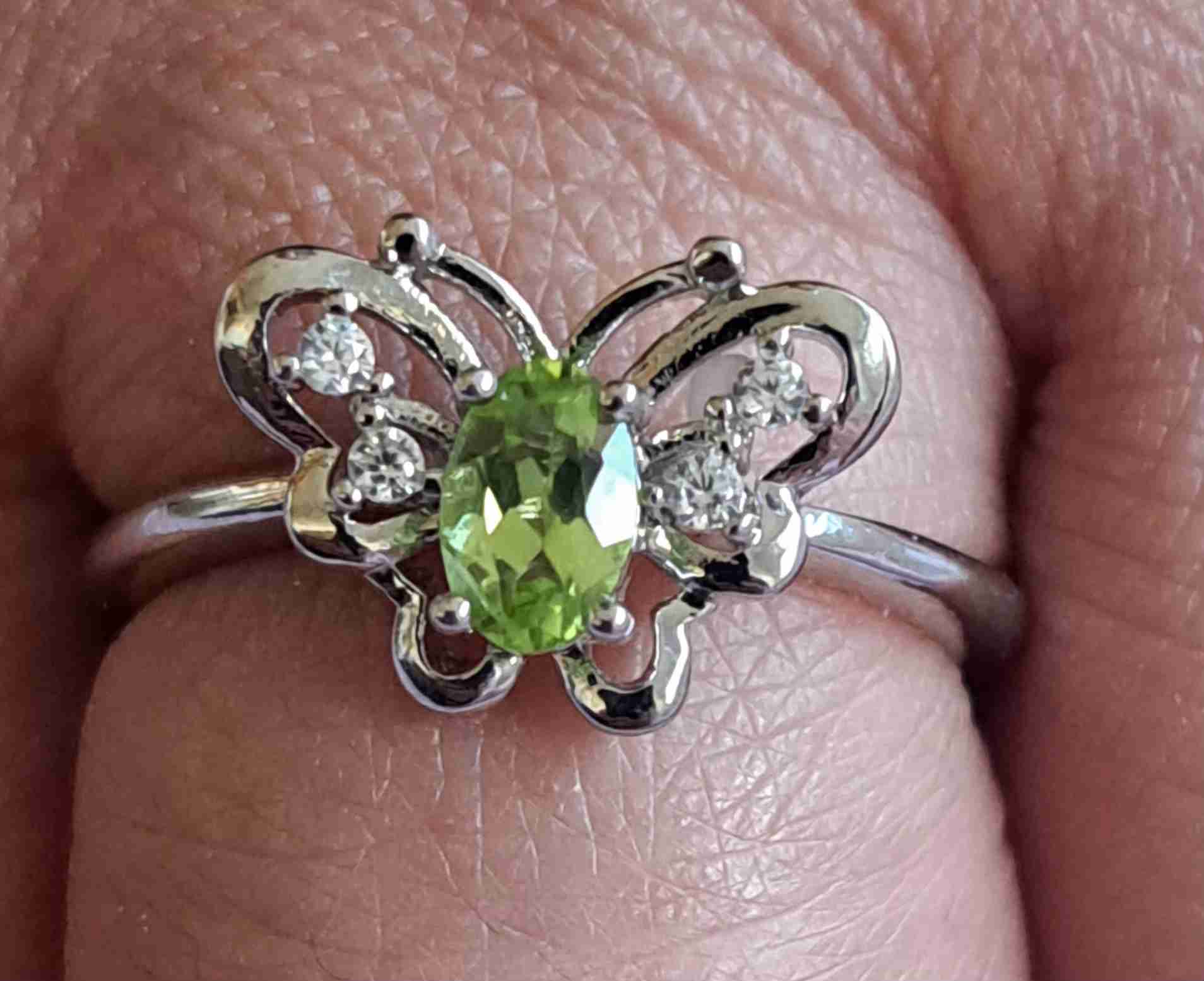 Anillos en aleacion cobre zinc, ajustables. Mariposa y Corazon en Peridoto Redondo en Ojo de Tigre Ovalado en Agata listada. $5.500 cada uno.