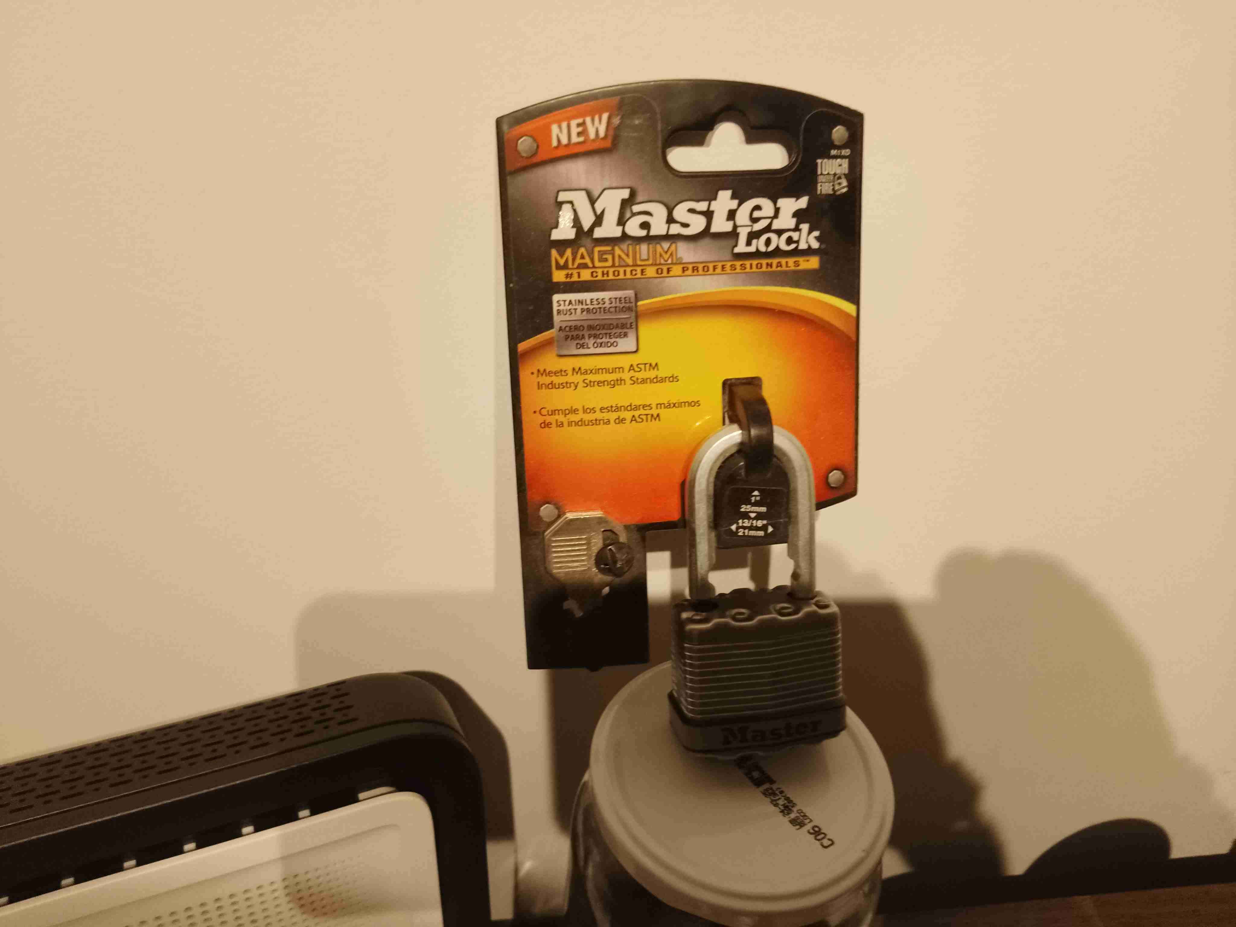 Candado Master Lock en estado nuevo ideal para seguridad. Cumple normas ASTM para máxima protección.
