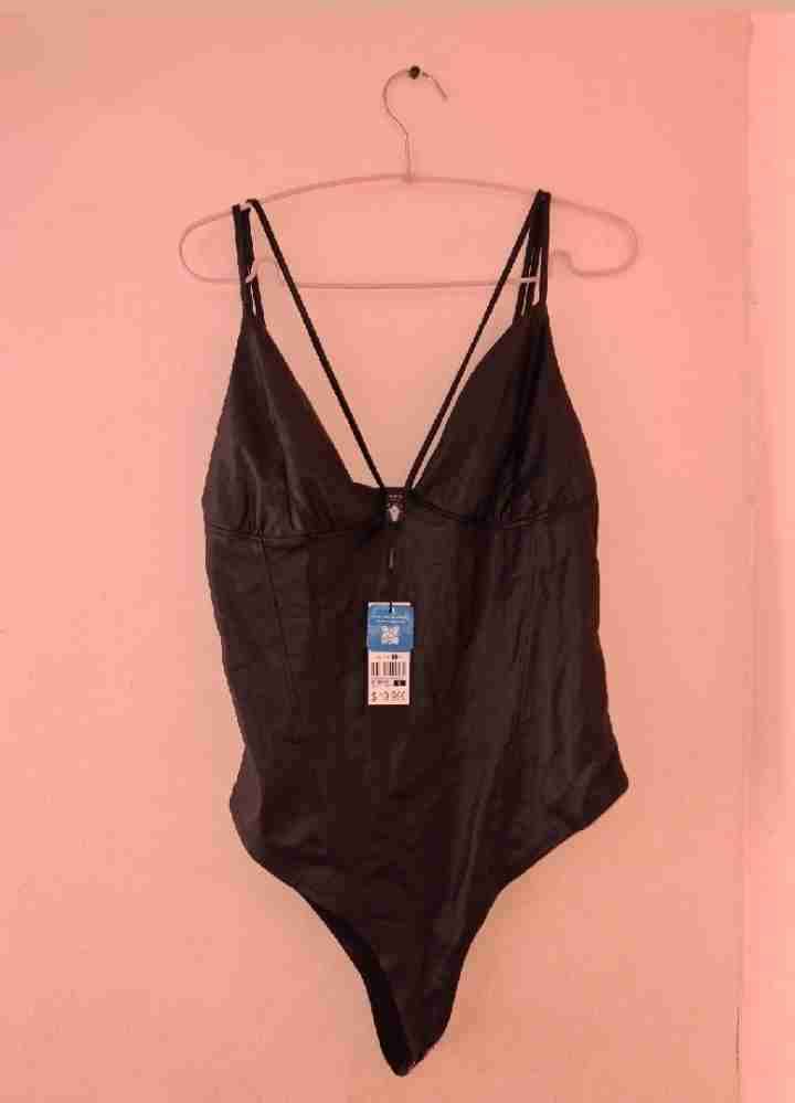 Elegante body negro con tirantes finos. Perfecto para una salida nocturna. Nuevo con etiqueta visible.