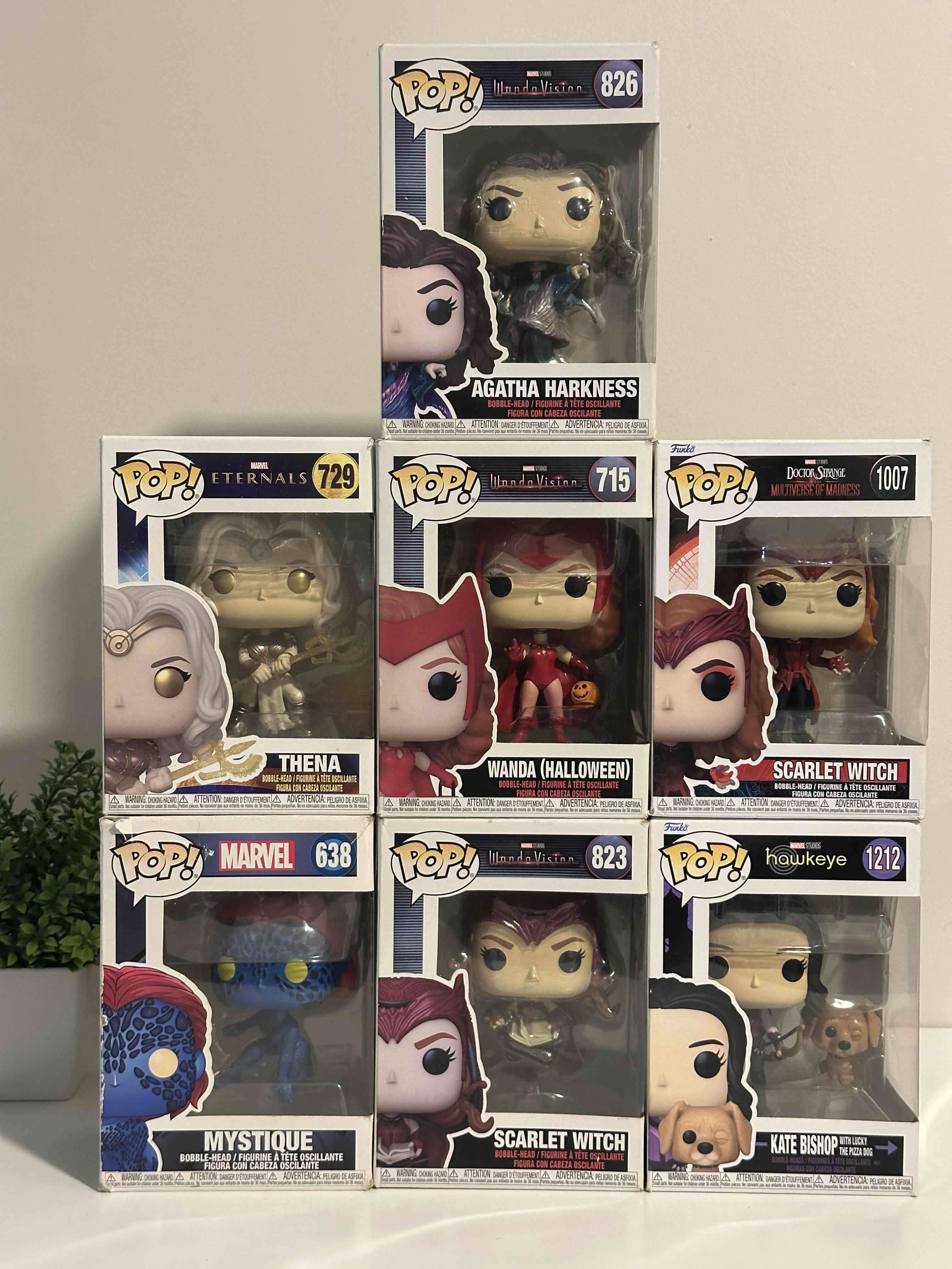 Figuras Funko Pop! originales de Marvel Universe, en excelente estado y con caja incluida. Se venden por unidad. ✅✨ Disponibles: (Precios conversables!) 😊 • Agatha Harkness – $12.000 • Thena – $12.000 • Wanda Maximoff – $12.000 • Scarlet Witch – $12.000 • Mystique – $12.000 • Scarlet Witch – $12.000 • Kate Bishop – $12.000