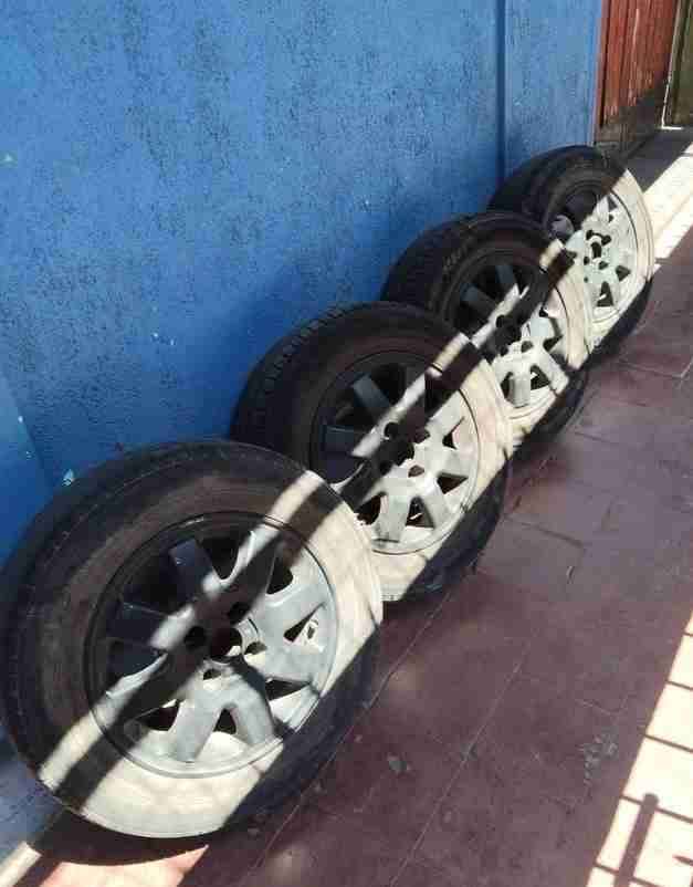 Juego de cuatro 4 llantas aro 14 en buenas condiciones ideales para auto o camionetas. Nunca reparadas, las usaba en un hyundai i10, compatibles con otros modelos apernadura 4 en 100, detalles mínimos por su uso pero no afecta en su funcionamiento, funcionan al 100 ya que antes de dejar de usar se les hizo balanceo, precio total mente conversable al ir a verlas, se van con neumáticos al 90% de vida, se venden las 4 No por unidad, están guardadas en lo espejo( Valparaíso con Lincoln)
