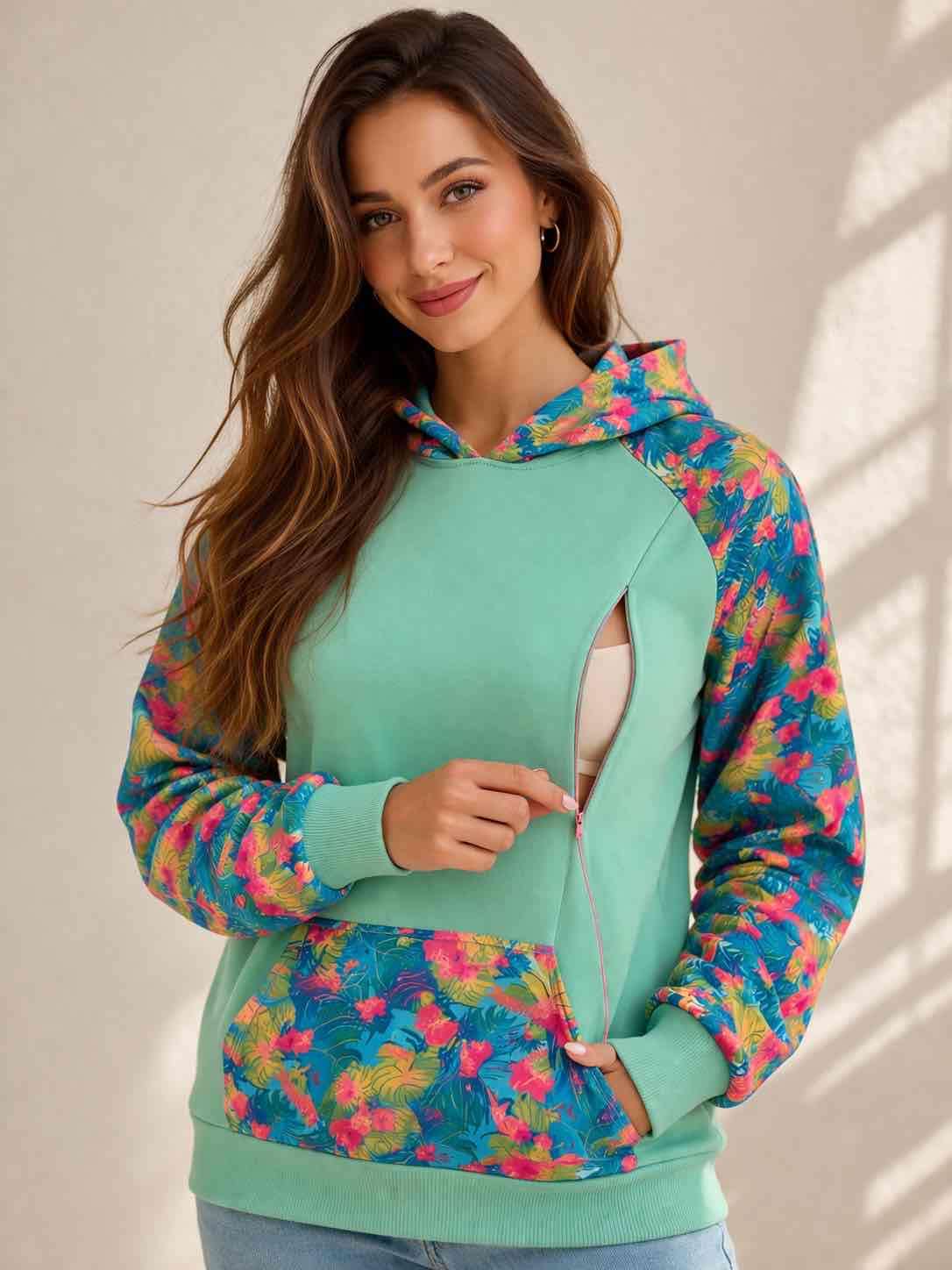 Polerón verde con estampado floral