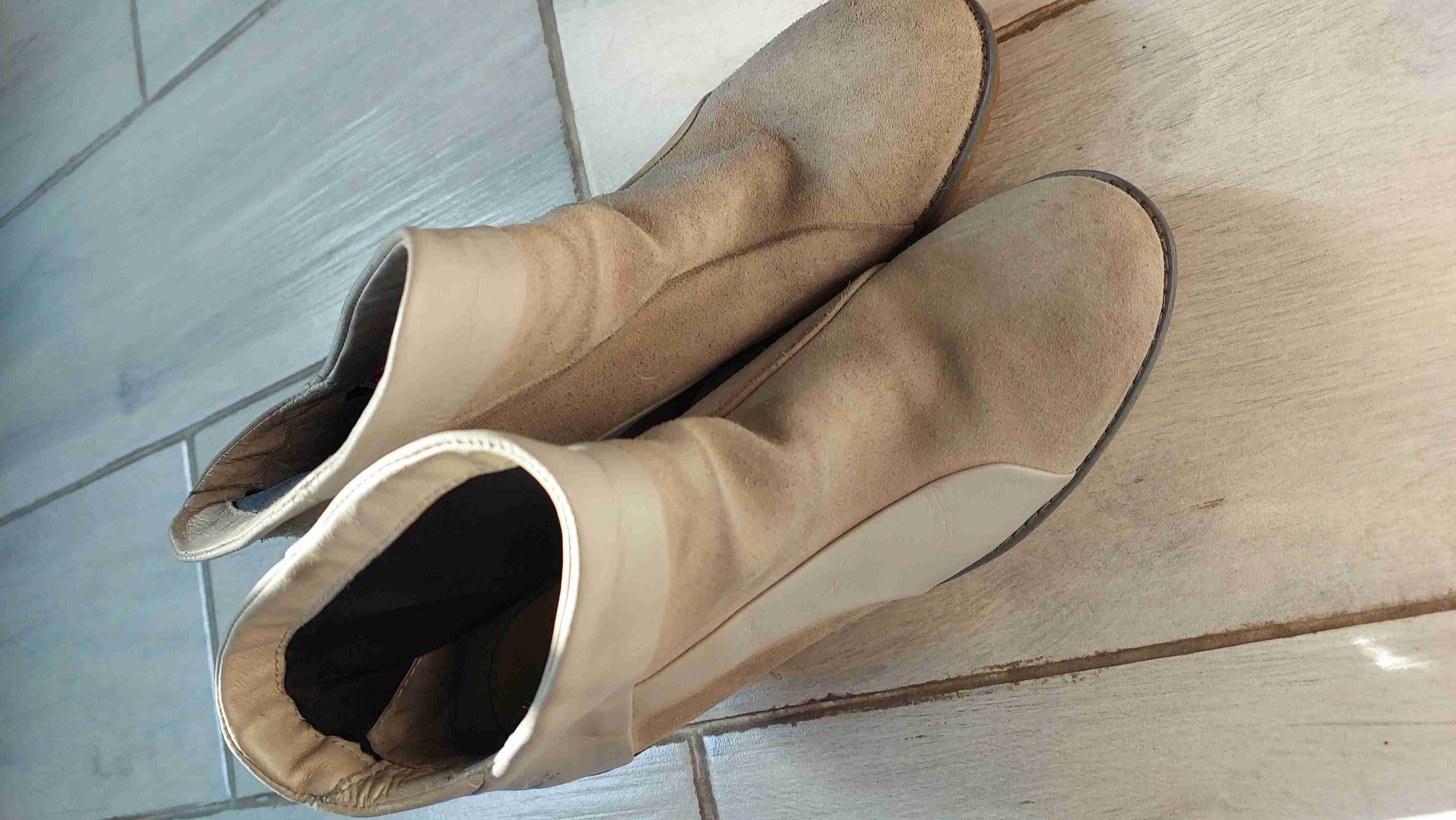 Elegantes botines beige de gamuza en buen estado. Ideales para uso diario o eventos especiales. Pequeños signos de uso visibles.